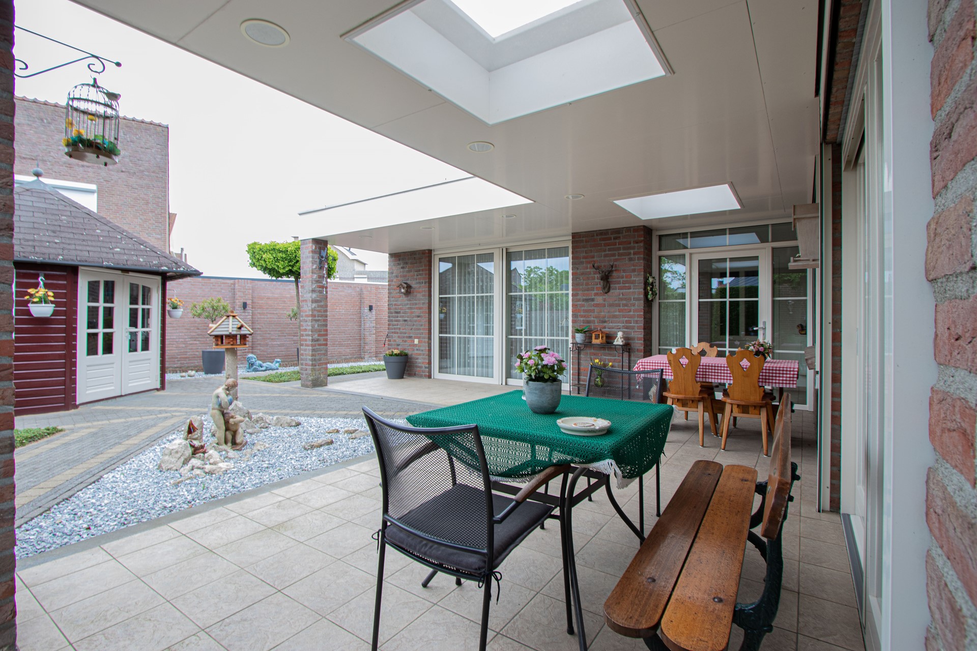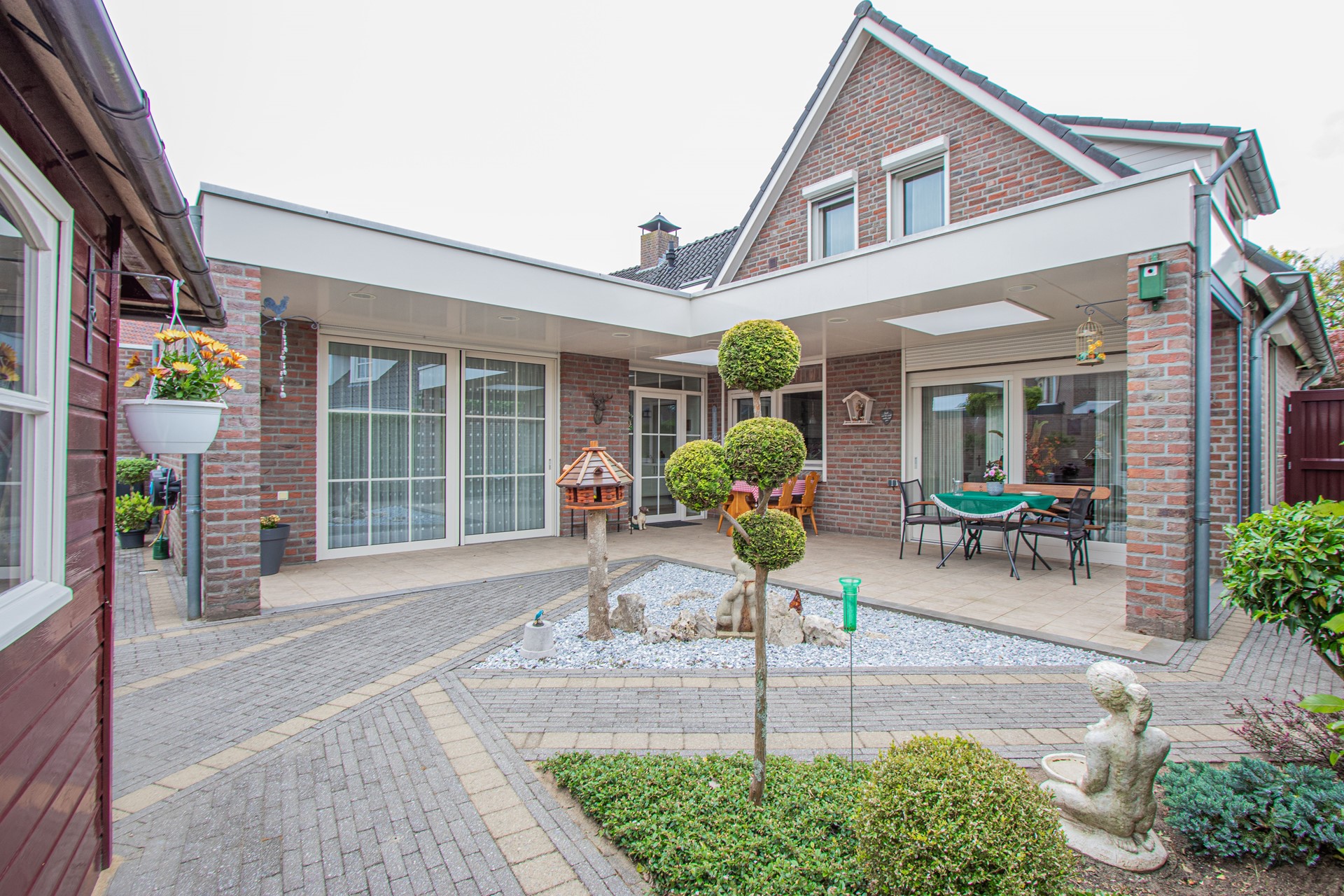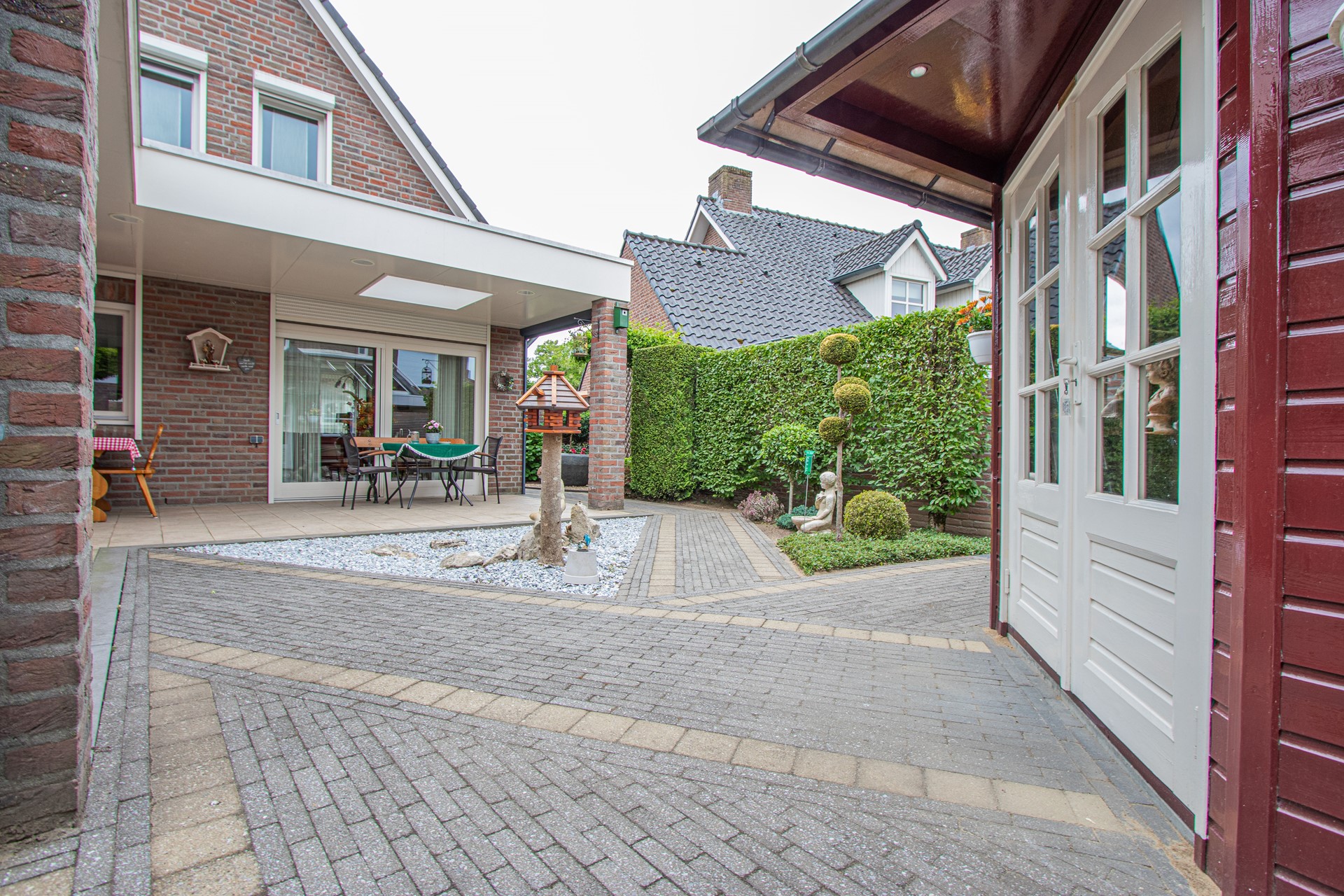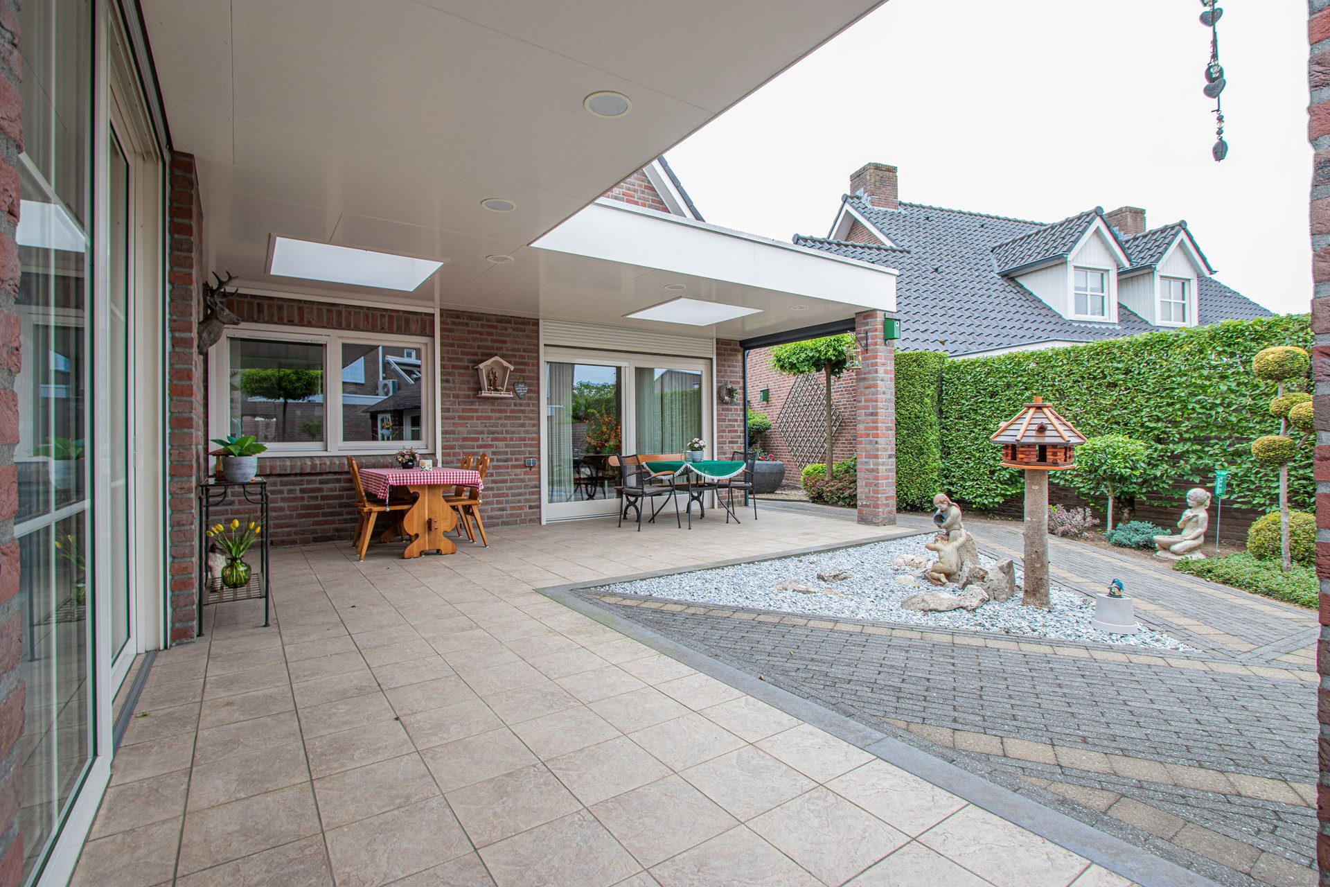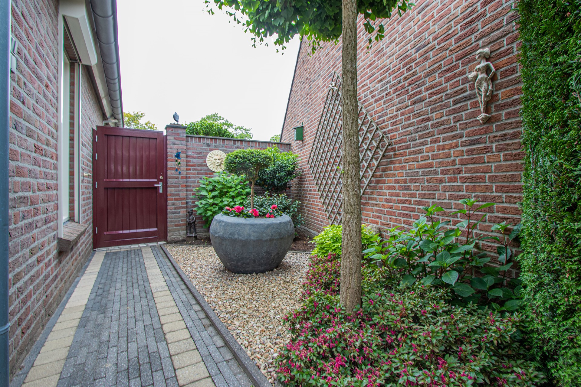Rondom is een verzorgd aangelegde tuin met aan de rechterzijde een oprit voor tenminste één wagen alsmede aan de linkerzijde een eigen achterom. Heerlijk overdekt terrasoverkapping om de zomeravonden te verlengen waarbij de achtertuin redelijk onderhoudsvriendelijk is aangelegd en geheel omsloten. Verder is er nog een houten tuinhuis voor de opslag van tuinaccessoires. Diverse voorzieningen, winkels, sportclub, huisarts op loopafstand en nabij de Leudal bossen om heerlijk te kunnen wandelen en fietsen.