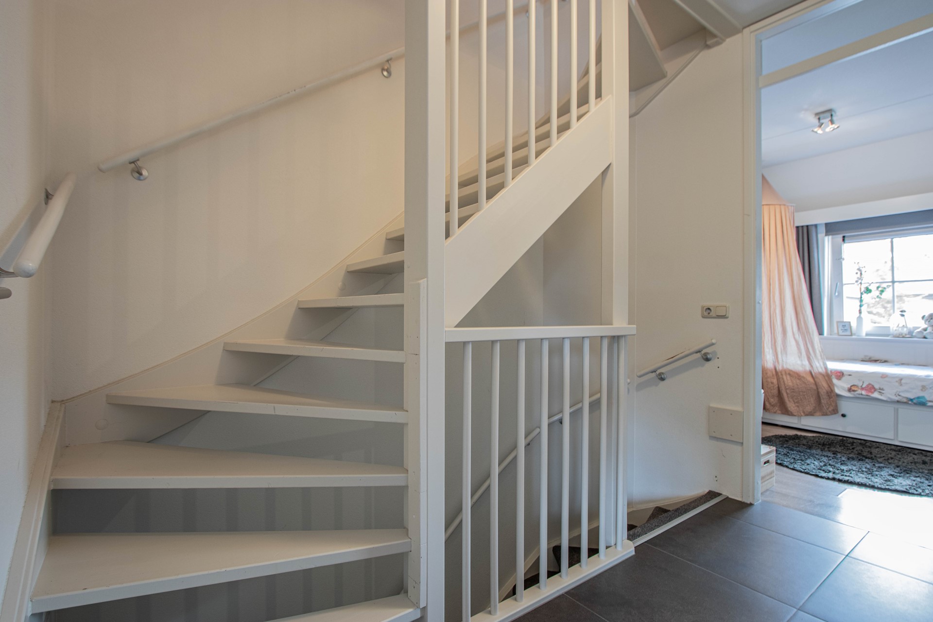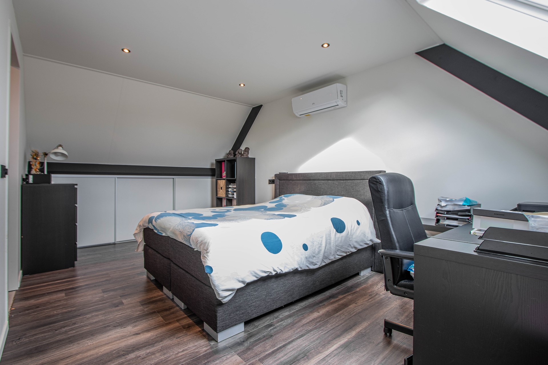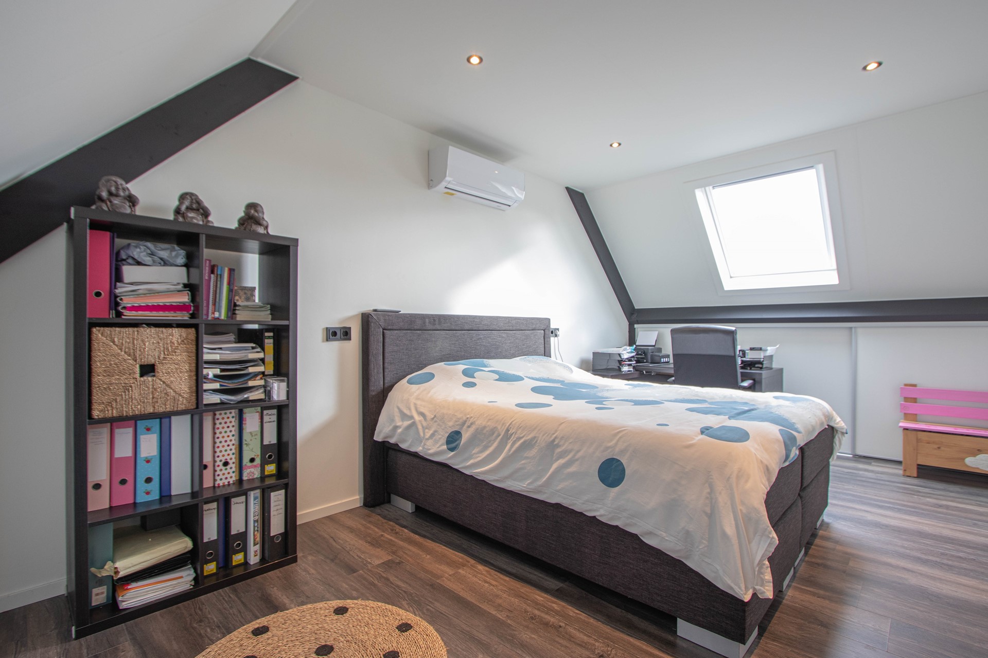 Vaste trap naar tweede verdieping met praktische opbergruimte – handige vliering – stookruimte, omvormer en vierde extra slaapkamer v.v. airco en Velux dakvenster alsmede diverse schuifkasten.