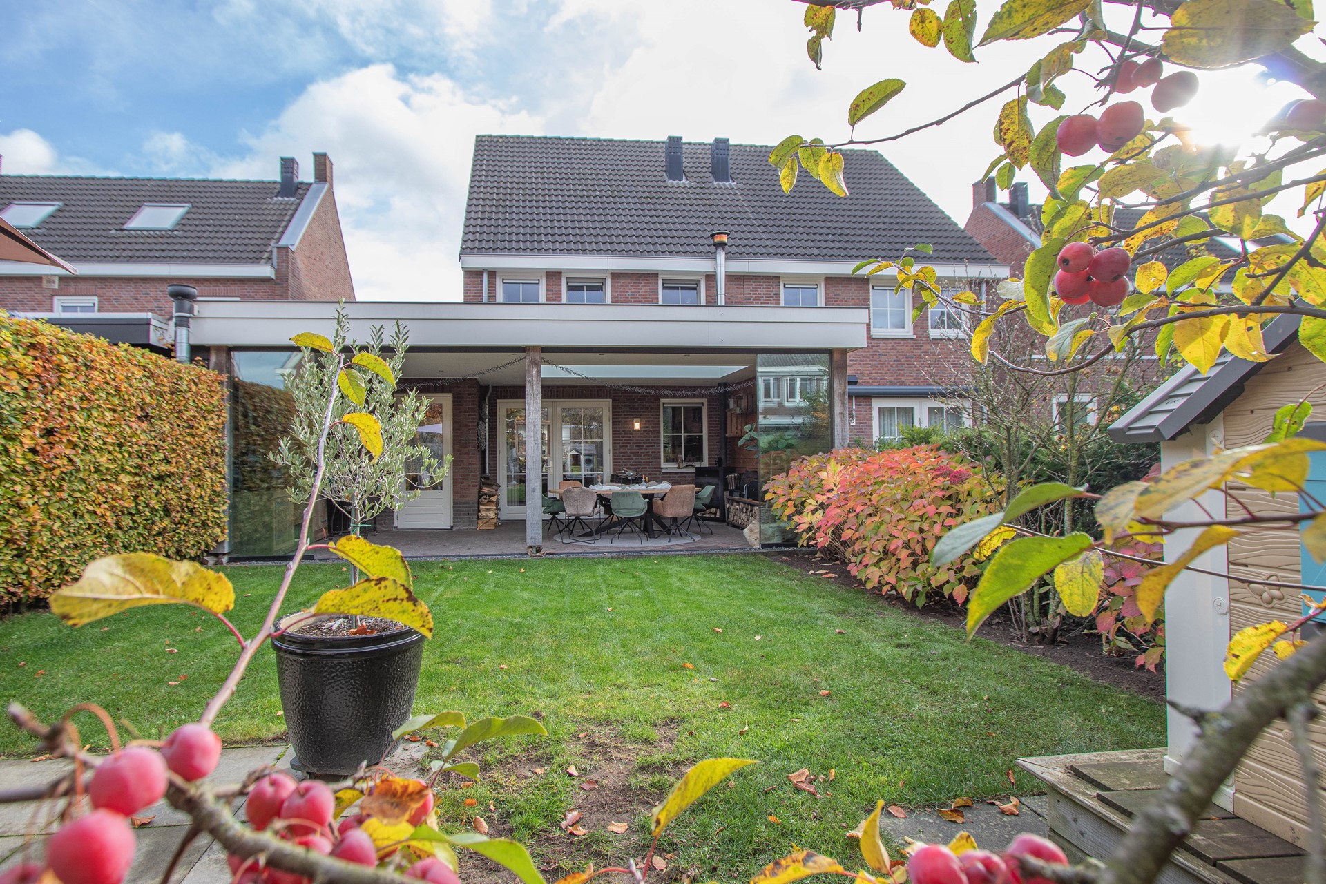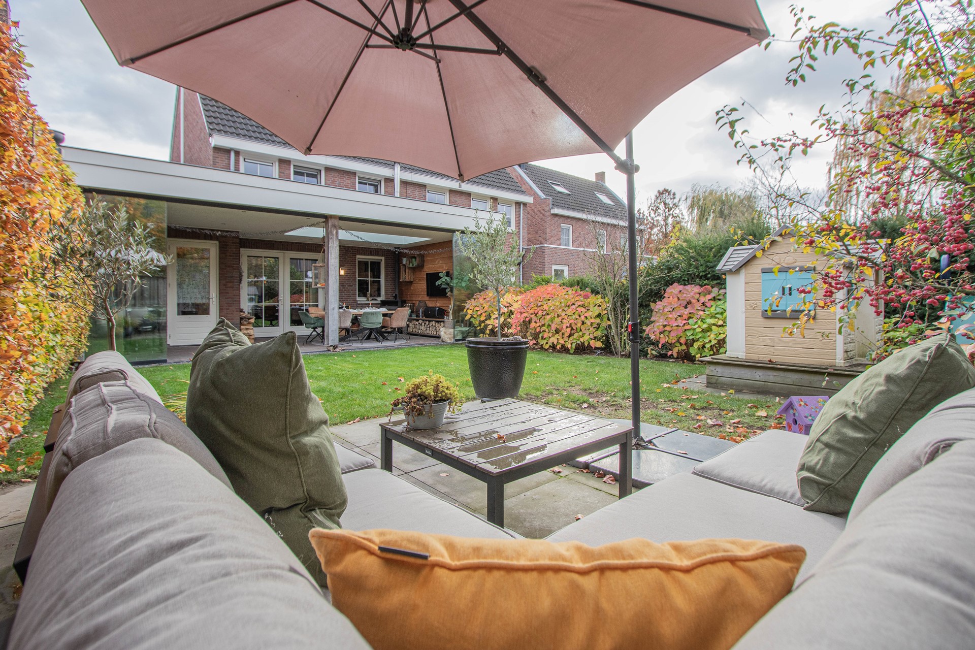 Bij binnenkomst in deze leuke woning ademt het sfeer uit in de entree/hal. Hier bevindt zich de meterkast (incl. glasvezel en 3 fase aansluiting), trapopgang met vloerbedekking naar de eerste verdieping en toegang tot de sfeervolle eet-/ en woonkamer met airco (2021). Grenzend aan de eetkamer tref je de LUXE KEUKEN in hoekopstelling met diverse (recent vernieuwde) inbouwapparatuur. Via de eetkamer is een praktisch tussenportaal bereikbaar met de witgoedaansluiting en het (gasten)toilet met fonteintje. Zowel de inpandige garage en FENOMENALE TERRASOVERKAPPING met grote glazen(schuif)pui, lichtstraat en kachel (ter overname) te bereiken waar je heerlijk met vrienden en familie de avonden kunt verlengen. Op de eerste verdieping tref je drie heerlijke slaapvertrekken en keurig verzorgde badkamer met inloopdouche, 2e toilet, vaste wastafelmeubel met spiegel en design radiator. Middels vaste trap is de 2e verdieping bereikbaar met de technische installaties, handige bergruimte, vliering en 4e ruime (extra) slaap-/hobbykamer met 2e airco en groot Velux dakvenster.
