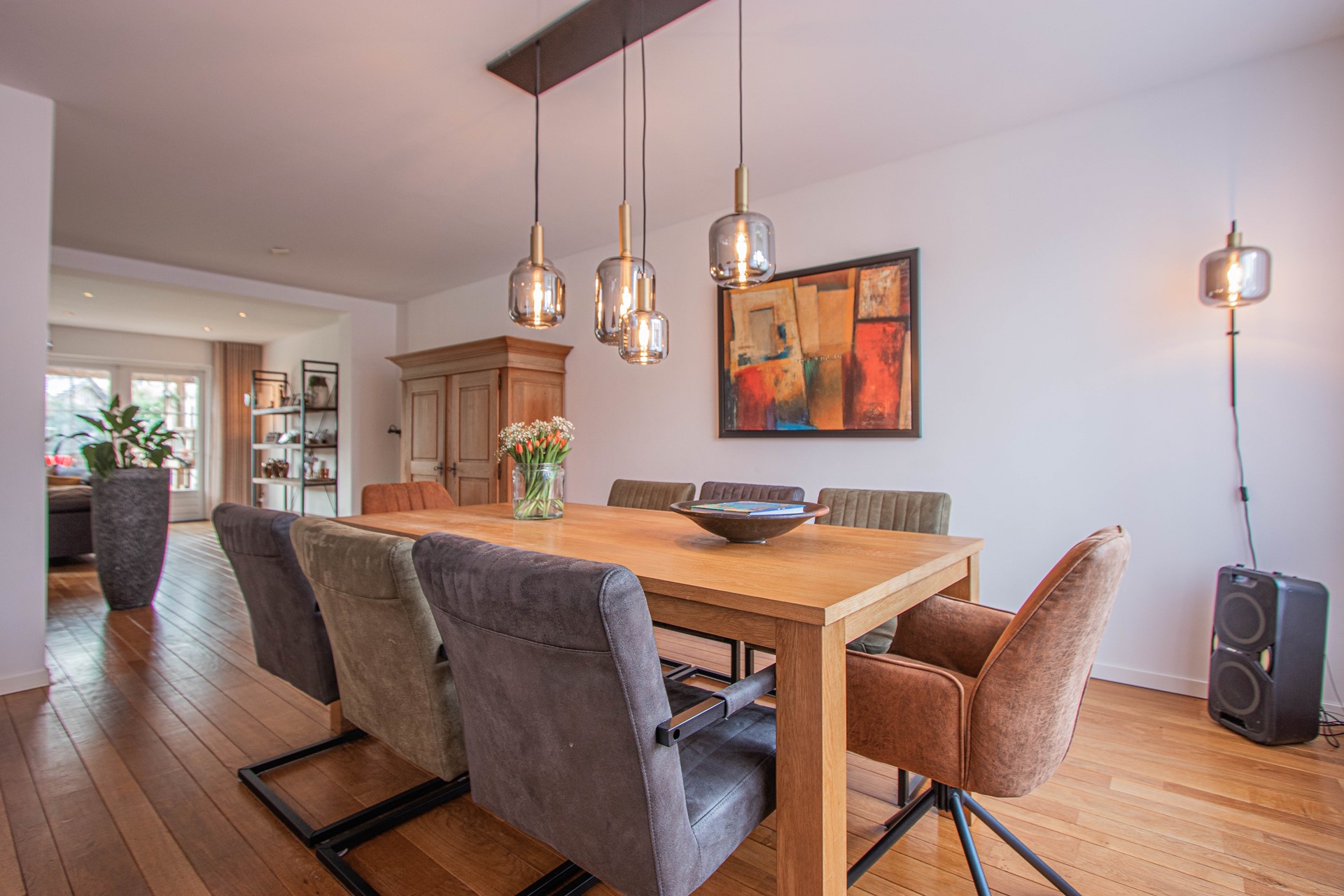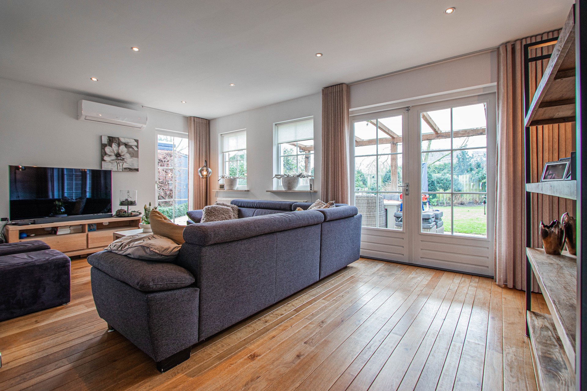 Op de begane grond kom je binnen in de hal met een modern toilet, meterkast (2024) en toegang tot de keuken en opgang naar de verdieping. De keuken staat in verbinding met de woon-/ en eetkamer waarbij deze is voorzien van o.a. navolgende inbouwapparatuur inductiekookplaat (2023), RVS afzuigkap, oven en een mooi natuurstenen werkblad. Hieraan grenzend treft men de heerlijk lichte eetkamer met houten plankenvloer en de L-vormige uitgebouwde woonkamer met openslaande tuindeuren en airco. Mede door de vele raampartijen heerlijk licht en makkelijk in te delen. Vanuit de keuken bereik je de berging met schuifkastenwand en de witgoedaansluitingen vanwaar ook de achtertuin is te bereiken.