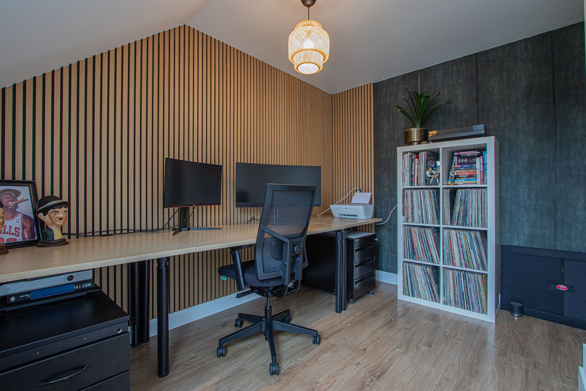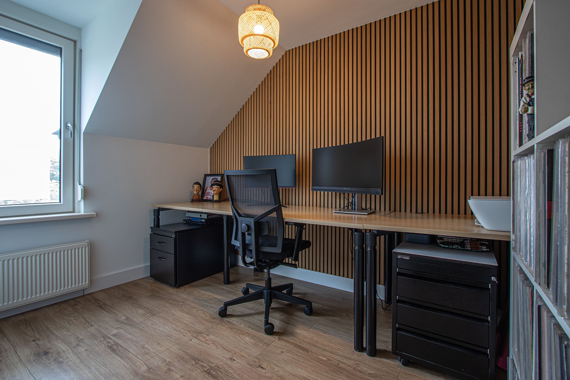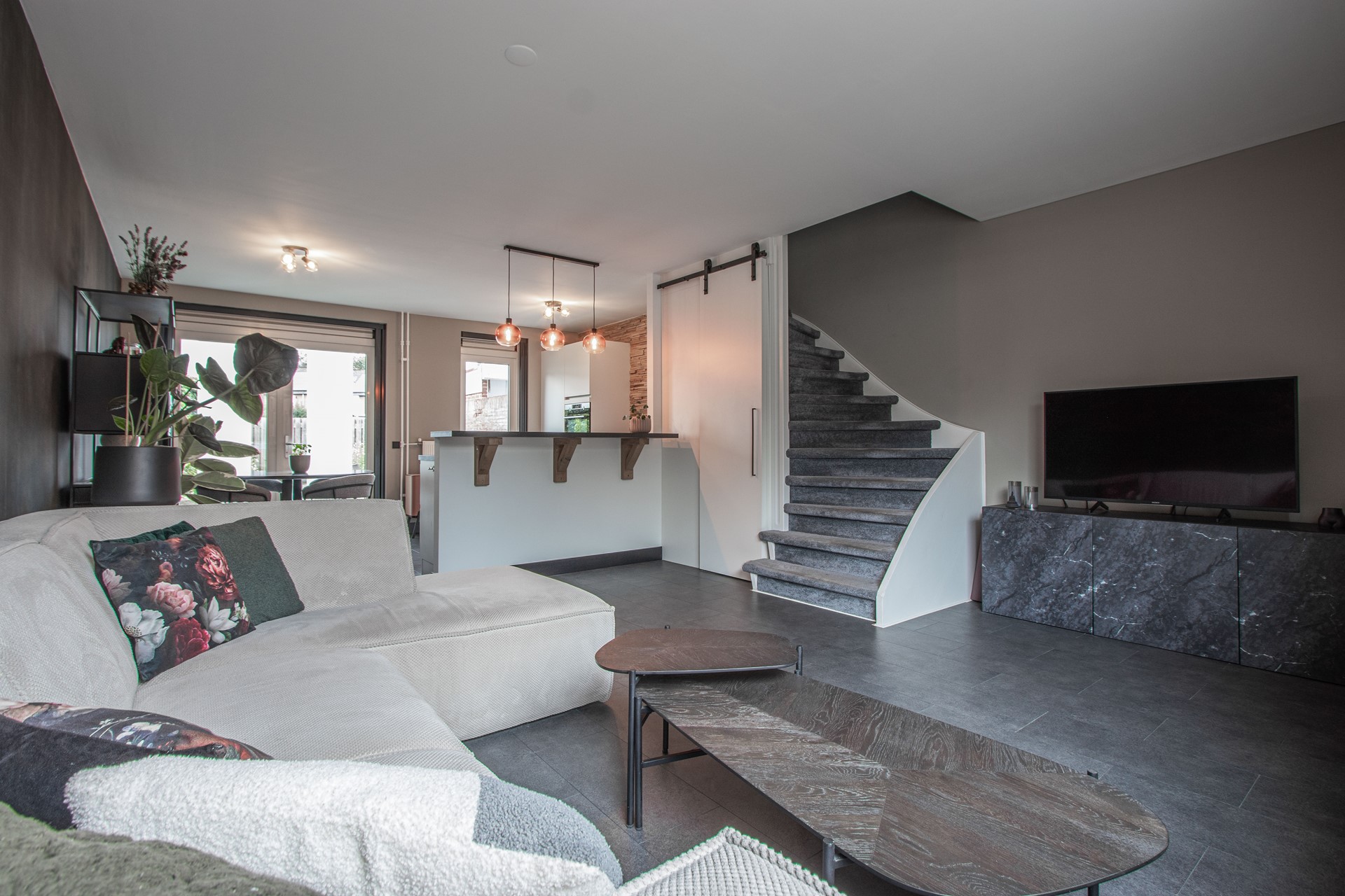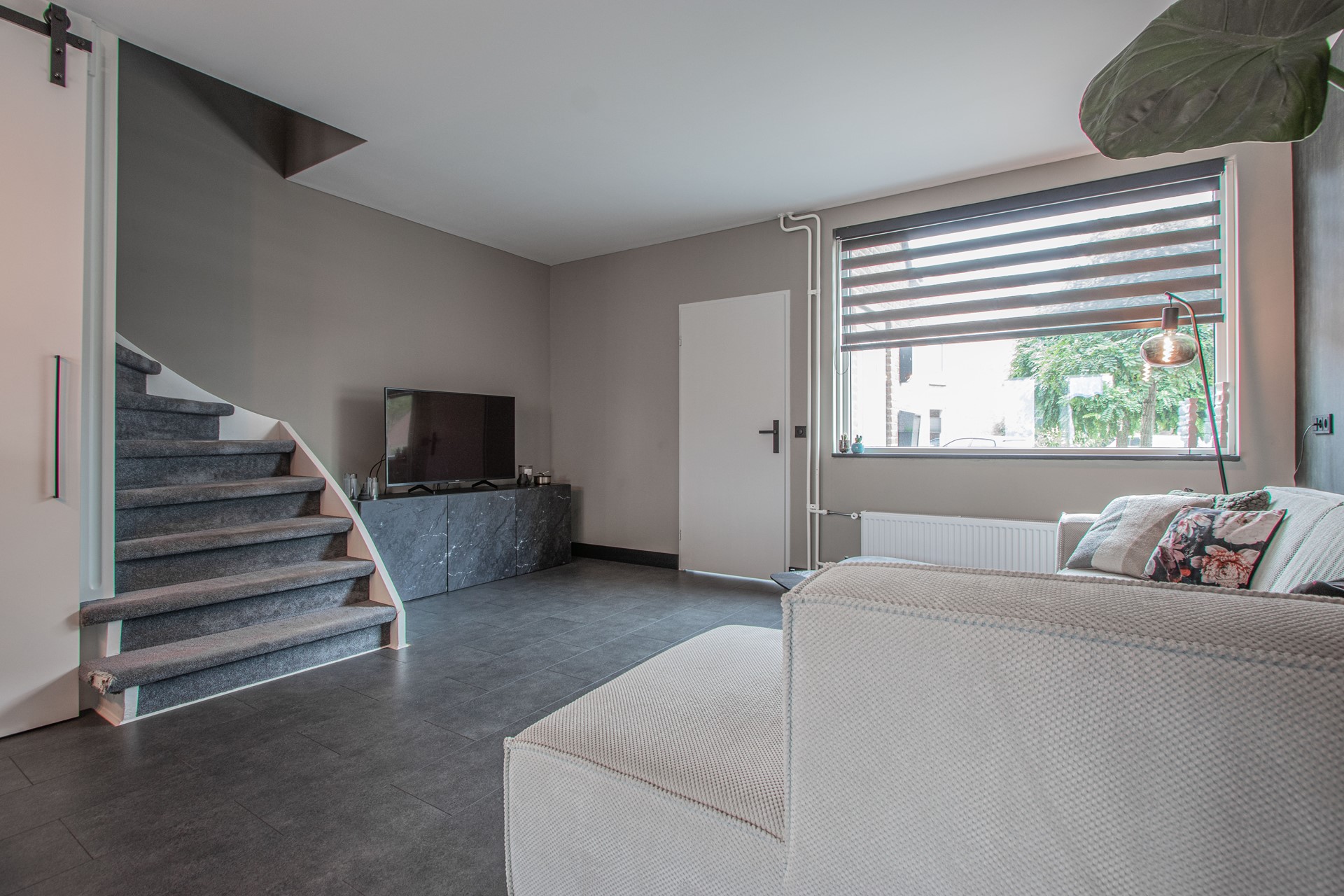 Bij binnenkomst kom je uit in de strakke ontvangsthal met garderobe, het modern gastentoilet met fonteintje, de meterkast en toegang tot de woonkamer. De woonkamer is heerlijk licht en is afgewerkt met een antraciet tegellaminaat met strakke muren en plafonds. De SUPER-DE-LUXE keuken met speelse bar is tijdloos wit met alle denkbare inbouwapparatuur. Via de eetkamer is middels de openslaande tuindeuren toegang tot de privacy biedende achtertuin. Qua opbergruimte is er onder de trap nog een praktische trappenkast. De trap is afgewerkt met grijze vloerdekking vanwaar toegang tot de verdieping. Hier liggen drie heerlijke slaapvertrekken alsook een verzorgde badkamer met vloerverwarming, inloopdouche, tweede toilet, groot wastafelmeubel met spiegelwand. Ook is er nog een verdieping te bereiken middels de vaste trap met schuifdeur vanuit de overloop. Hier bevinden zich de witgoedaansluitingen, HR cv-opstelling en een vierde extra (slaap)kamer, ideaal voor het gezin of degene die thuis kan werken.