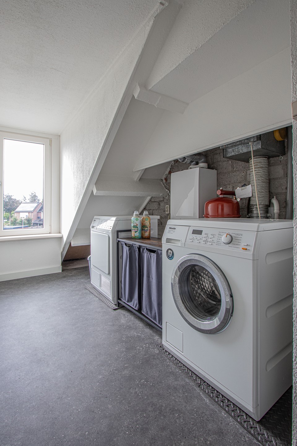 Middels vaste trap toegang tot de zolderverdieping met de witgoedaansluitingen, cv-opstelling en vierde extra (slaap)kamer met dakkapel.