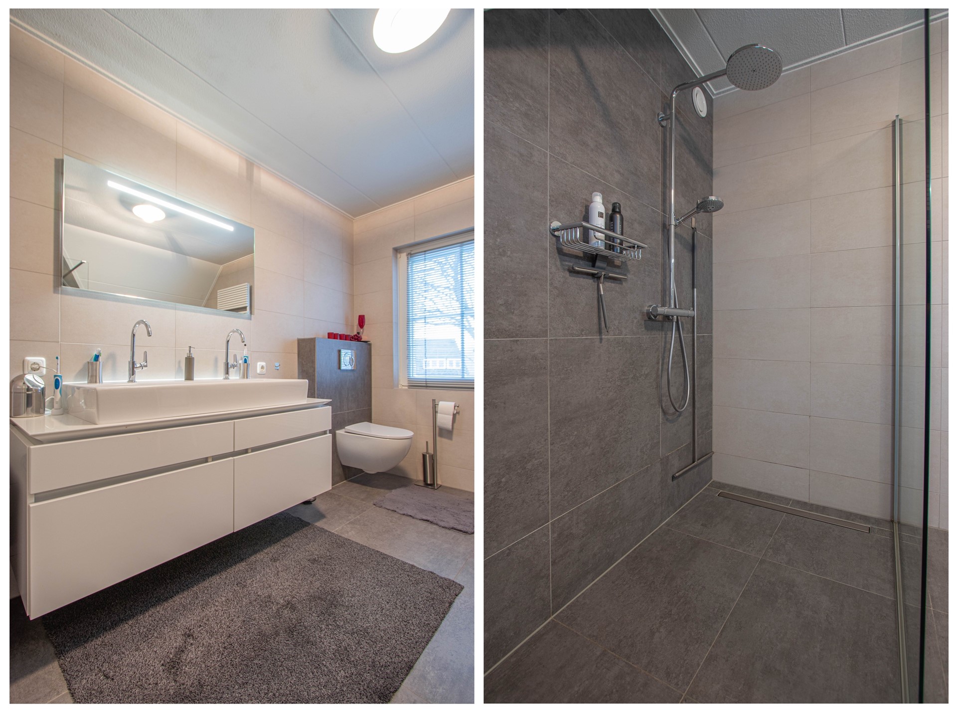 Dubbele wastafel Inloopdouche Toilet