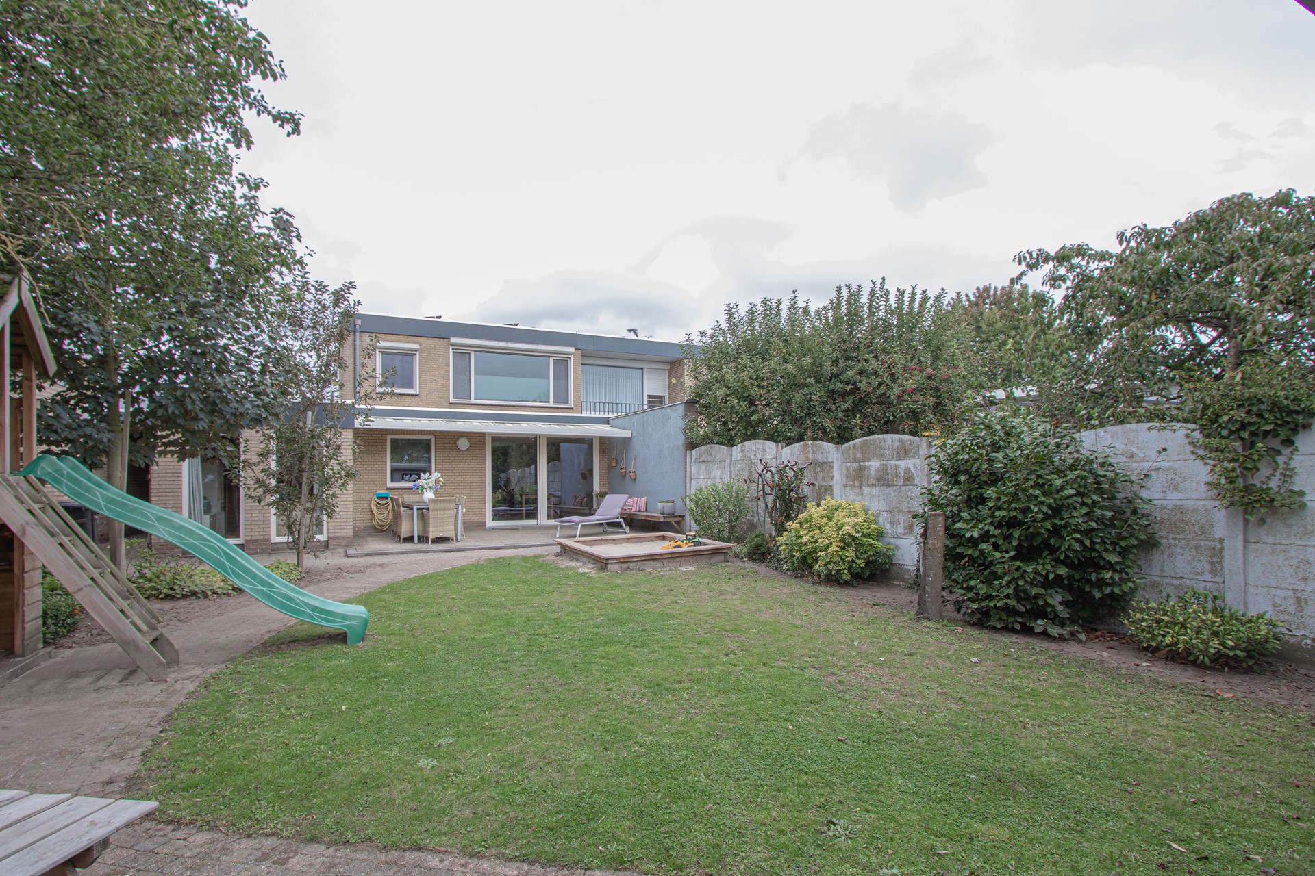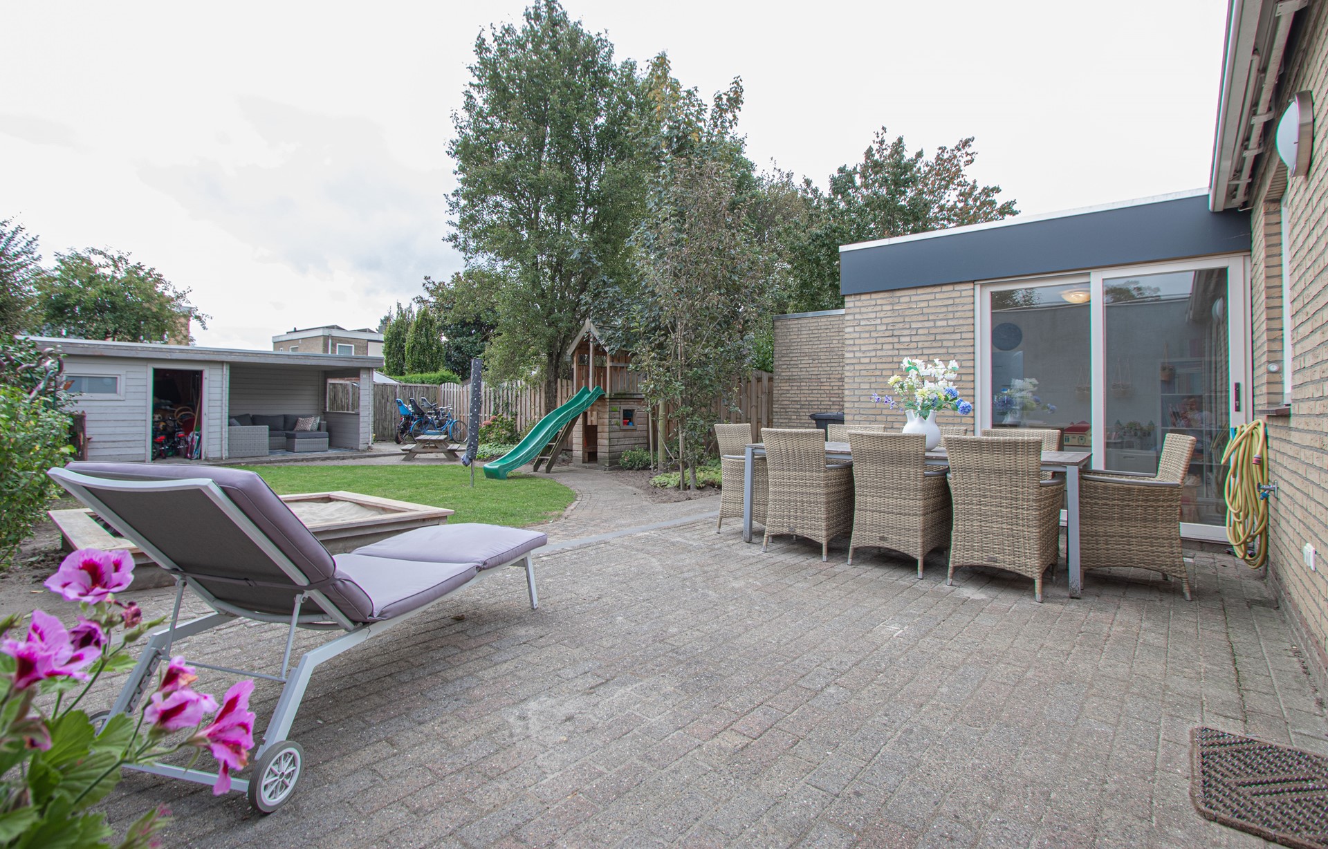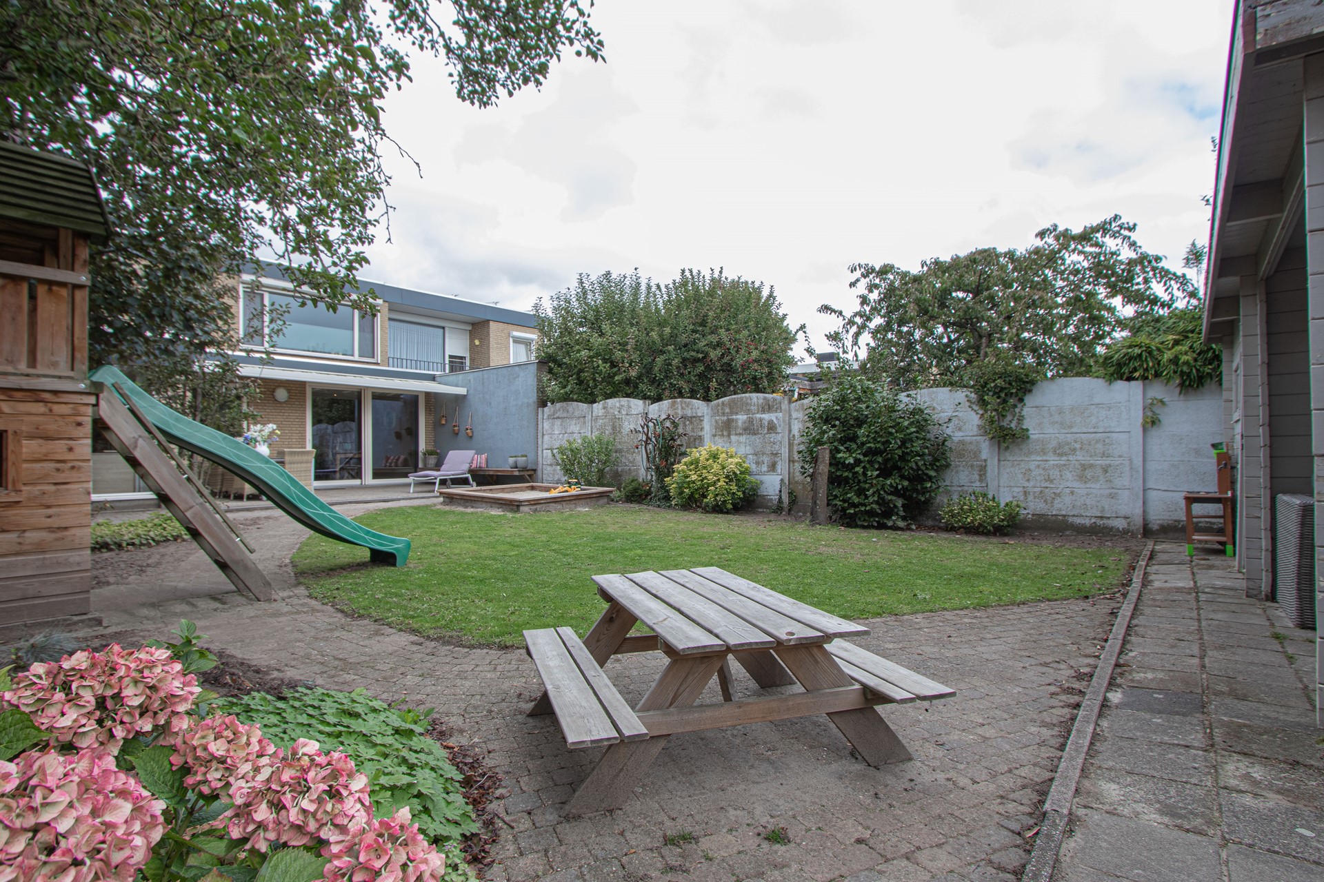 Deze woning is in 1966 gebouwd en ruim van opzet en heeft een fantastische tuin op een perceel van maar liefst 367m². De huidige bewoners hebben in 2021 een leuke keuken met alle denkbare inbouwapparatuur geplaatst. In de woonkamer ligt comfortabele vloerverwarming met een eigentijds PVC vloer en middels de grote schuifpui toegang tot de achtertuin. Hier kun je heerlijk genieten onder het elektrisch zonnescherm dat over de gehele woning aanwezig is, of je gaat met vrienden, familie zitten onder de terrasoverkapping achterin de tuin. Mede gezien het feit dat er een eigen achterom is en heel veel privacy kun je hier een speelparadijs maken voor je kinderen of degene met groene vingers een eigen groentetuintje. Het tuinhuis is ideaal voor de opslag van tuinaccessoires e.d. Via de eetkamer is er nog een praktische bijkeuken bereikbaar waar zich de cv-opstelling en witgoedaansluitingen bevinden. Vanuit hier is toegang tot de inpandige garage en de multifunctionele ruimte. Deze heeft ooit gediend als slaapkamer beneden met eigen wastafelmeubel, maar is ideaal als speelkamer of kantoor/werkplek aan huis met zicht op de achtertuin. Op de verdieping tref je aan de overloop drie keurige slaapvertrekken en de SUPER-DE-LUXE badkamer (2019) met inloopdouche, dubbele wastafelmeubel, 2e toilet en design radiator. De huidige bewoners hebben afgelopen jaar het plat dak na laten isoleren (80mm) en er 14 zonnepanelen laten plaatsen, alsook een airco waardoor de stookkosten aanzienlijk zijn gedaald. De ouderslaapkamer is v.v. een grote schuifkastenwand en de kinderen hebben echt een mega slaapkamer tot hun beschikking. De muren zijn strak gestukadoord en er ligt een eigentijdse laminaatvloer. Verder zijn er rolluiken op de verdieping aanwezig.