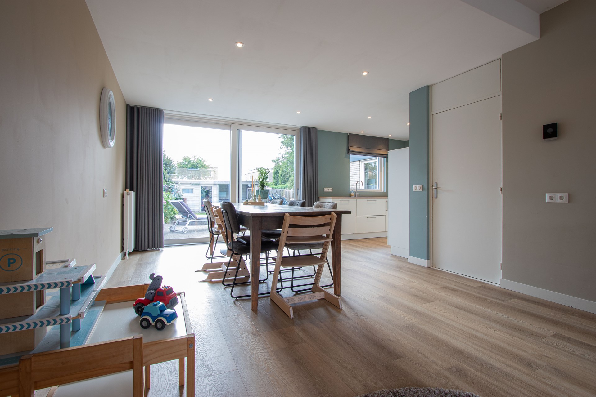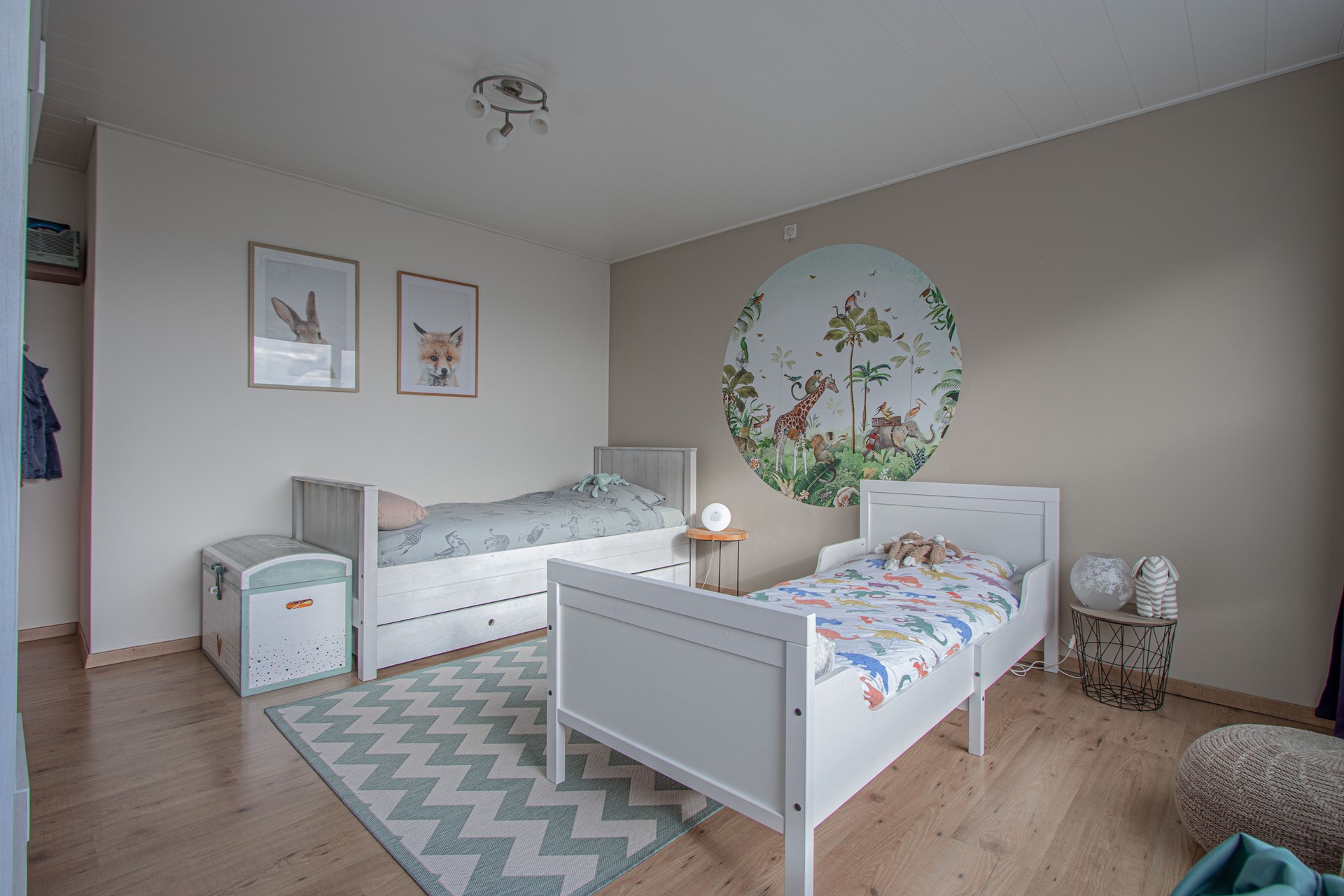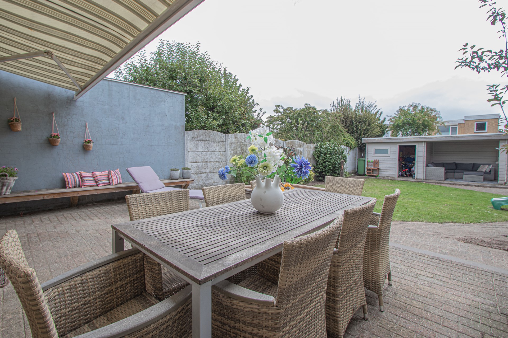 Deze woning is in 1966 gebouwd en ruim van opzet en heeft een fantastische tuin op een perceel van maar liefst 367m². De huidige bewoners hebben in 2021 een leuke keuken met alle denkbare inbouwapparatuur geplaatst. In de woonkamer ligt comfortabele vloerverwarming met een eigentijds PVC vloer en middels de grote schuifpui toegang tot de achtertuin. Hier kun je heerlijk genieten onder het elektrisch zonnescherm dat over de gehele woning aanwezig is, of je gaat met vrienden, familie zitten onder de terrasoverkapping achterin de tuin. Mede gezien het feit dat er een eigen achterom is en heel veel privacy kun je hier een speelparadijs maken voor je kinderen of degene met groene vingers een eigen groentetuintje. Het tuinhuis is ideaal voor de opslag van tuinaccessoires e.d. Via de eetkamer is er nog een praktische bijkeuken bereikbaar waar zich de cv-opstelling en witgoedaansluitingen bevinden. Vanuit hier is toegang tot de inpandige garage en de multifunctionele ruimte. Deze heeft ooit gediend als slaapkamer beneden met eigen wastafelmeubel, maar is ideaal als speelkamer of kantoor/werkplek aan huis met zicht op de achtertuin. Op de verdieping tref je aan de overloop drie keurige slaapvertrekken en de SUPER-DE-LUXE badkamer (2019) met inloopdouche, dubbele wastafelmeubel, 2e toilet en design radiator. De huidige bewoners hebben afgelopen jaar het plat dak na laten isoleren (80mm) en er 14 zonnepanelen laten plaatsen, alsook een airco waardoor de stookkosten aanzienlijk zijn gedaald. De ouderslaapkamer is v.v. een grote schuifkastenwand en de kinderen hebben echt een mega slaapkamer tot hun beschikking. De muren zijn strak gestukadoord en er ligt een eigentijdse laminaatvloer. Verder zijn er rolluiken op de verdieping aanwezig.