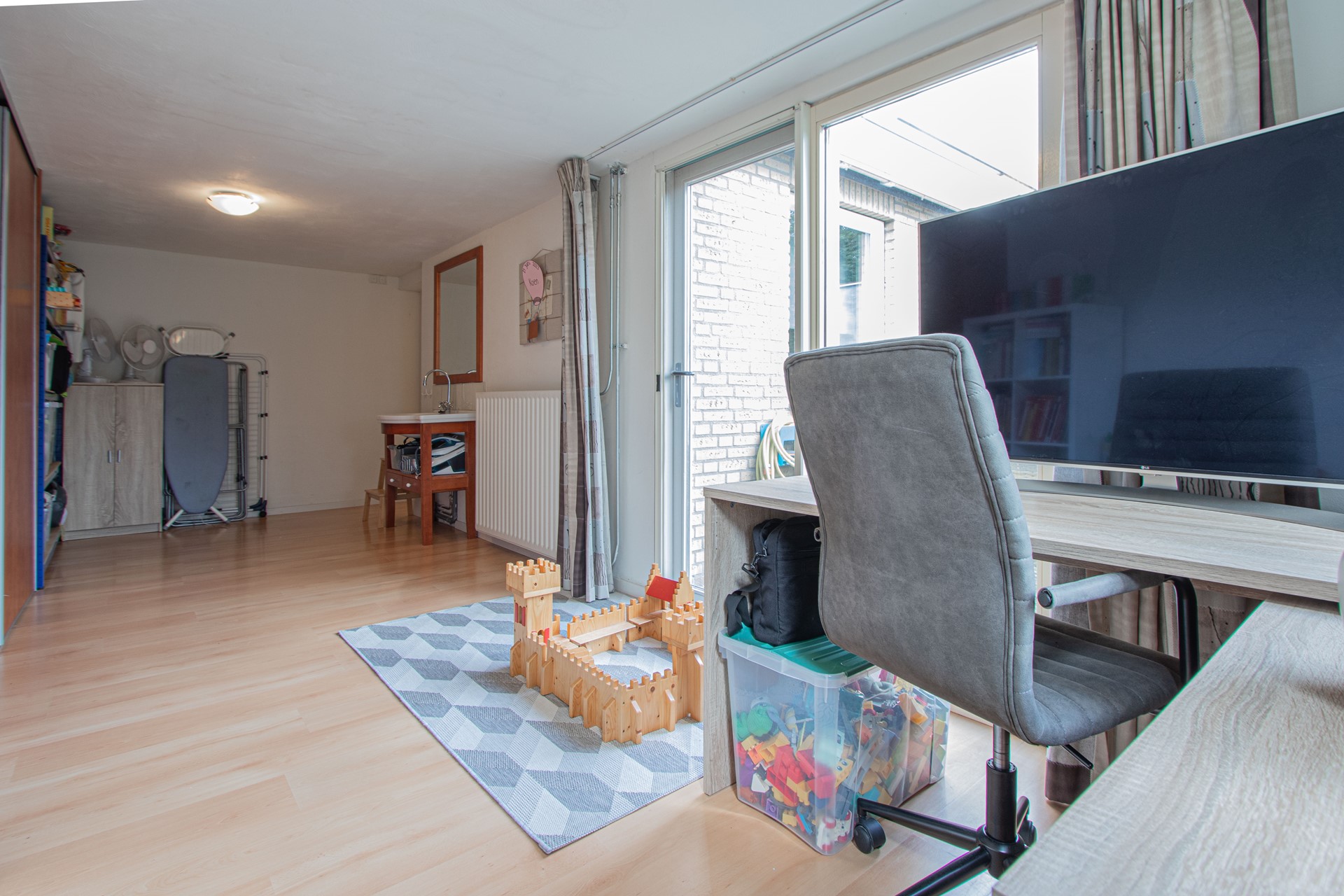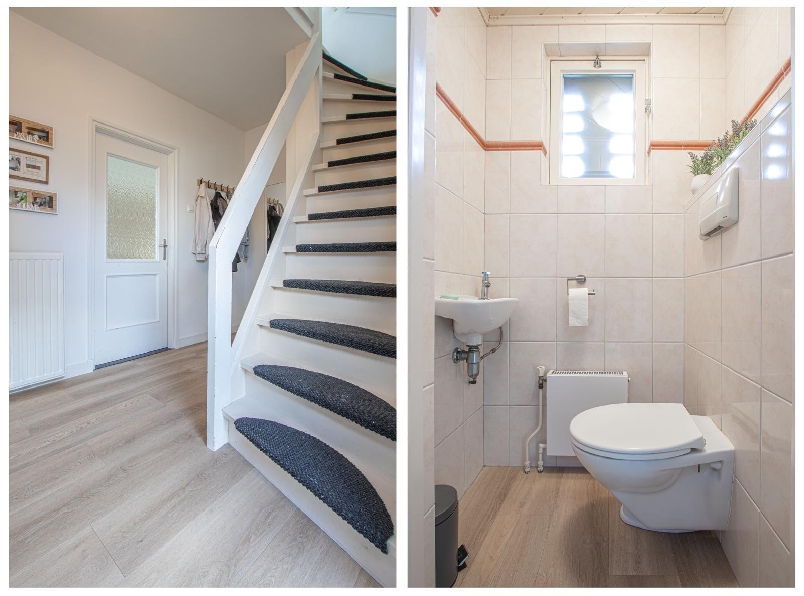 Begane grond: Ontvangsthal - gastentoilet met fonteintje - garderobe – trappenkast – moderne meterkast (2024) – uitgebouwde eet-/woonkamer met schuifpui – halfopen keuken in U-opstelling -praktische bijkeuken met witgoedaansluitingen - multifunctionele ruimte (kantoor, speelkamer of voor salon aan huis) en een inpandige garage (ca. 14.7m²).