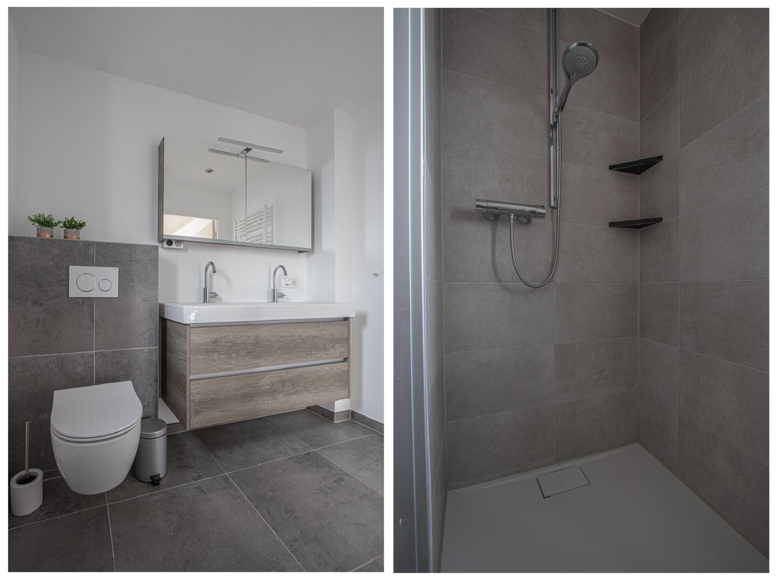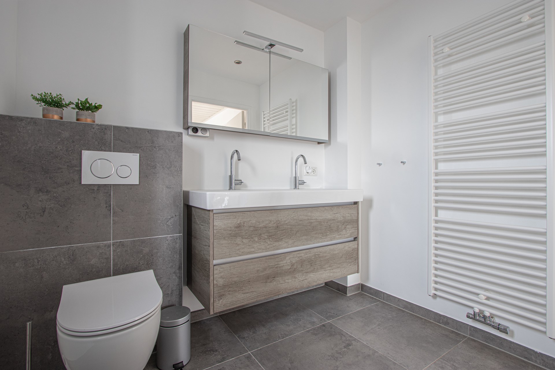 Overloop met airco en daaraan gelegen een drietal slaapkamers waarvan één v.v. grote schuifkastenwand en luxe badkamer.