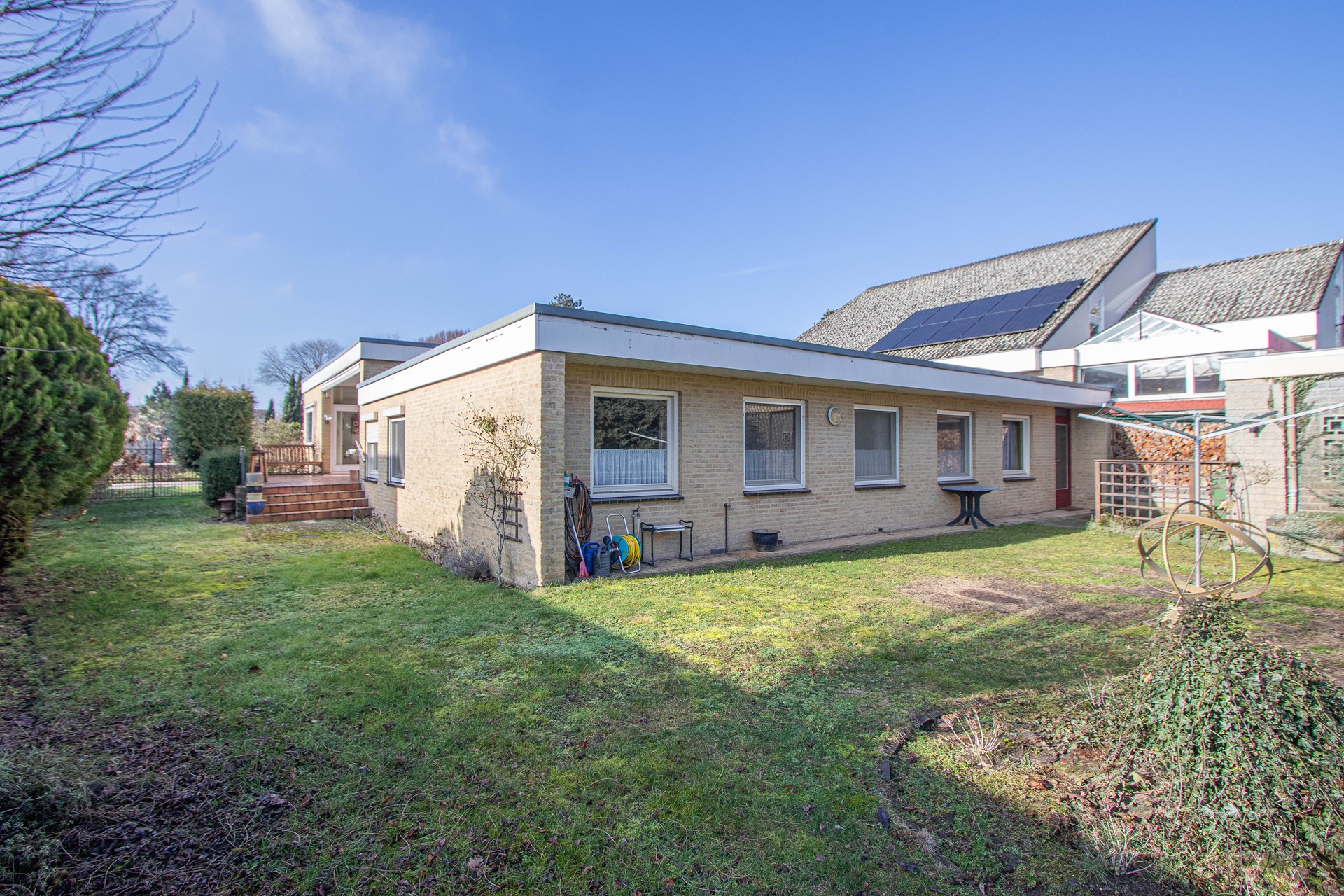 ✅ royale geschakelde BUNGALOW (1969) ✅ doorzon eet/-woonkamer met haard ✅ natuurstenen travertin vloer in woonkamer ✅ basic keuken met toegang overdekt terras ✅ riante ontvangsthal met gastentoilet ✅ nagenoeg levensloopbestendig (3 treden) ✅ tussenportaal met schuifkastenwand ✅ keurige badkamer met douche en bad ✅ drie gigantische slaapvertrekken ✅ inpandige garage (ruim 54m2) ✅ riant souterrain (ruim 60m2) ✅ Cv-installatie, merk Nefit bj ca. 2008 ✅ recent zijn gevels gevoegd en gestraald ✅ houten kozijnen met grotendeels dubbel glas ✅ externe (caravan)stalling ca. 24m2 ✅ verzorgd aangelegde voor-/ en achtertuin ✅ eigen achterom middels hekwerk ✅ oprit voor twee personenauto's (links) ✅ definitief energielabel F ✅ geliefde woonlocatie nabij de dorpskern ✅ OP KORTE TERMIJN te aanvaarden !!