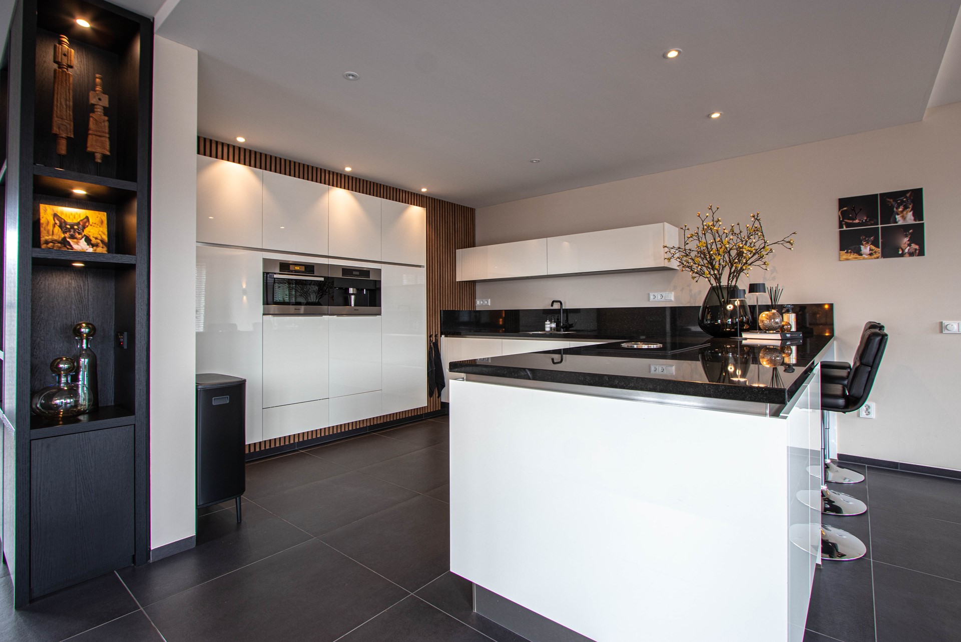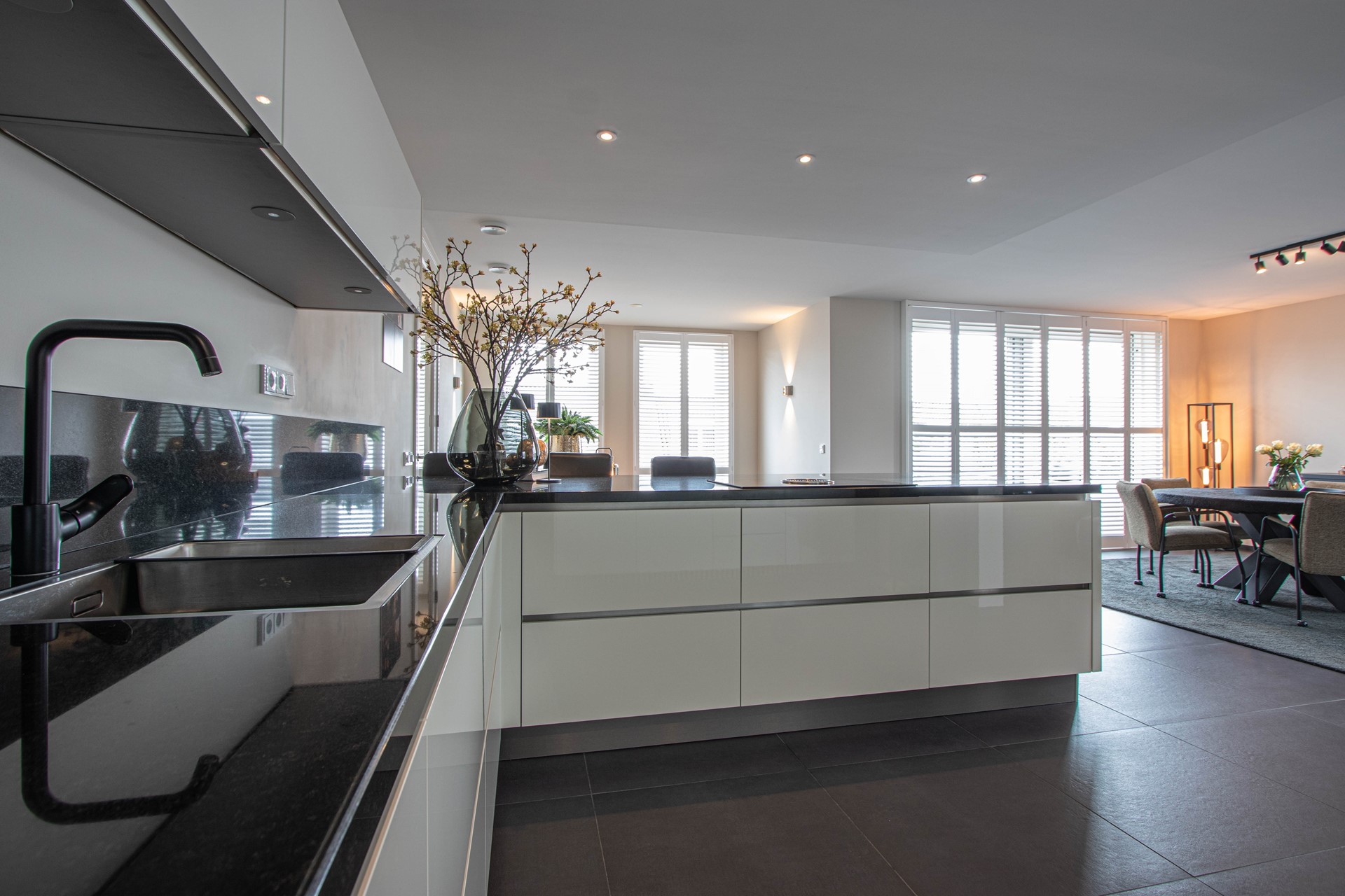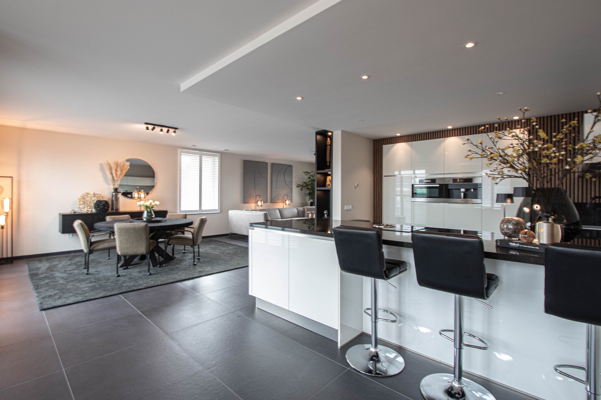 Via de galerij toegang tot de riante entree/hal – praktische bijkeuken - gastentoilet – twee slaapkamers – luxe badkamer - eet-/ en woonkamer – woonkeuken met eiland – twee dakterrassen middels twee grote schuifpuien.