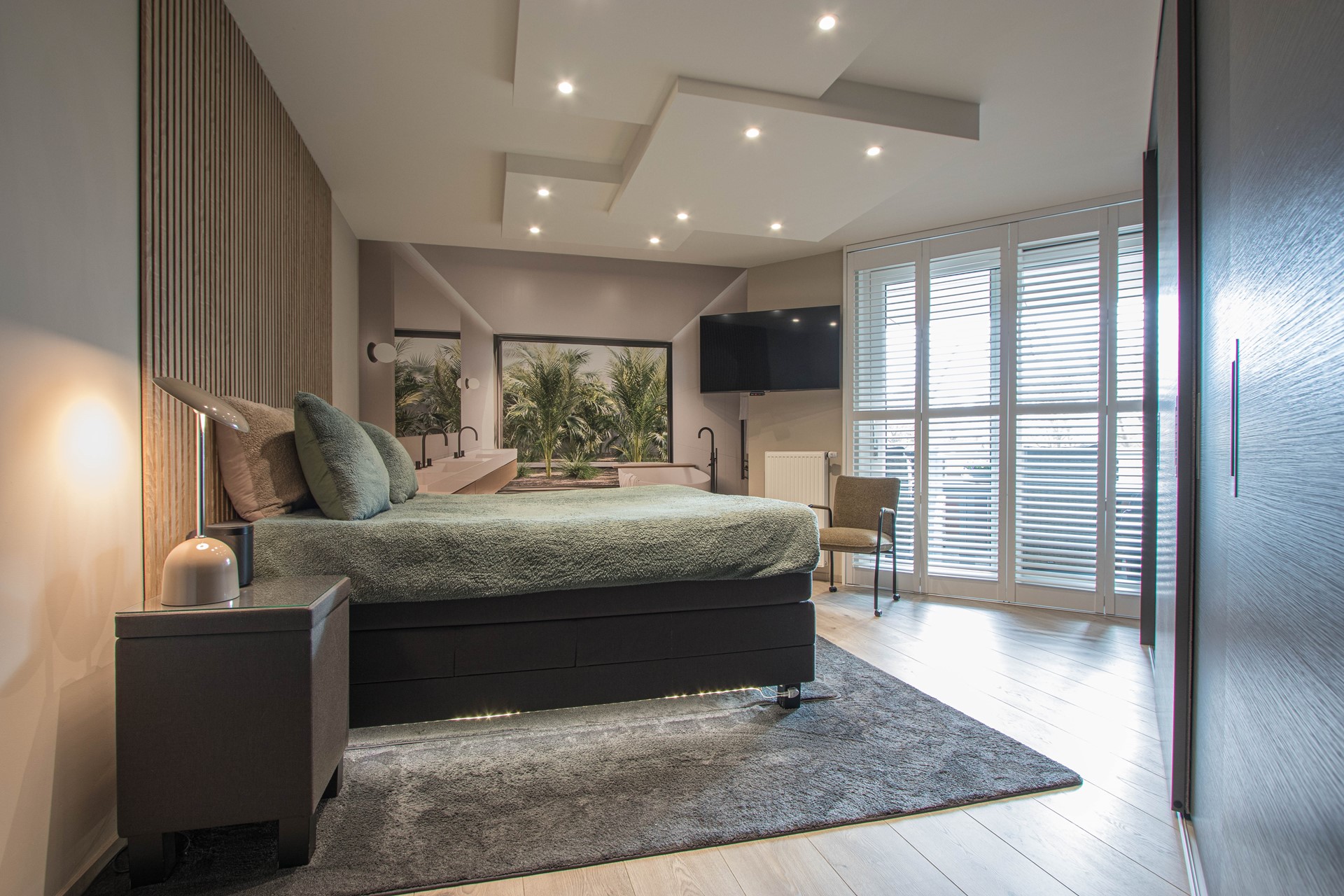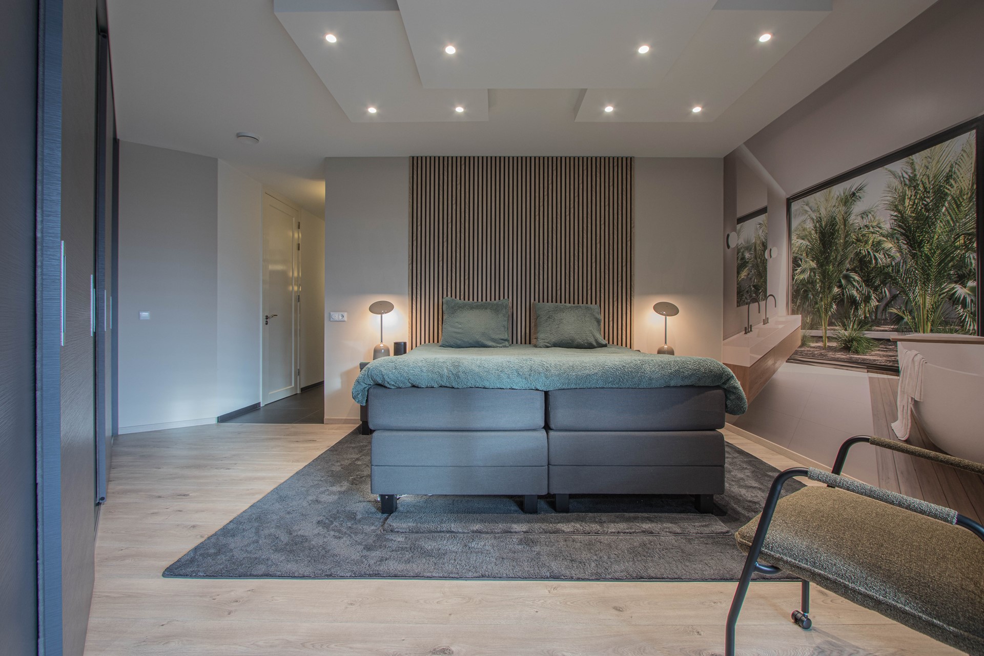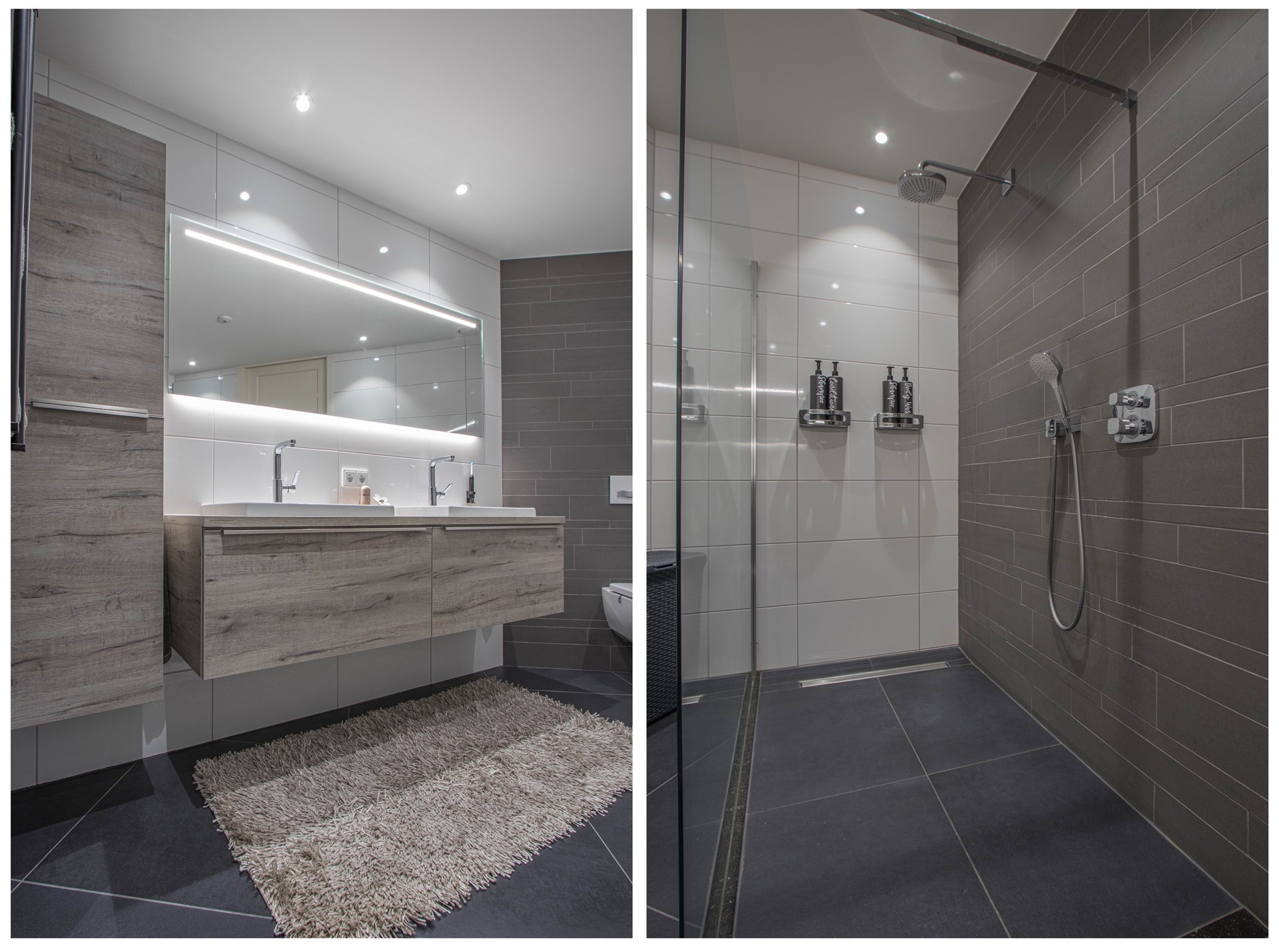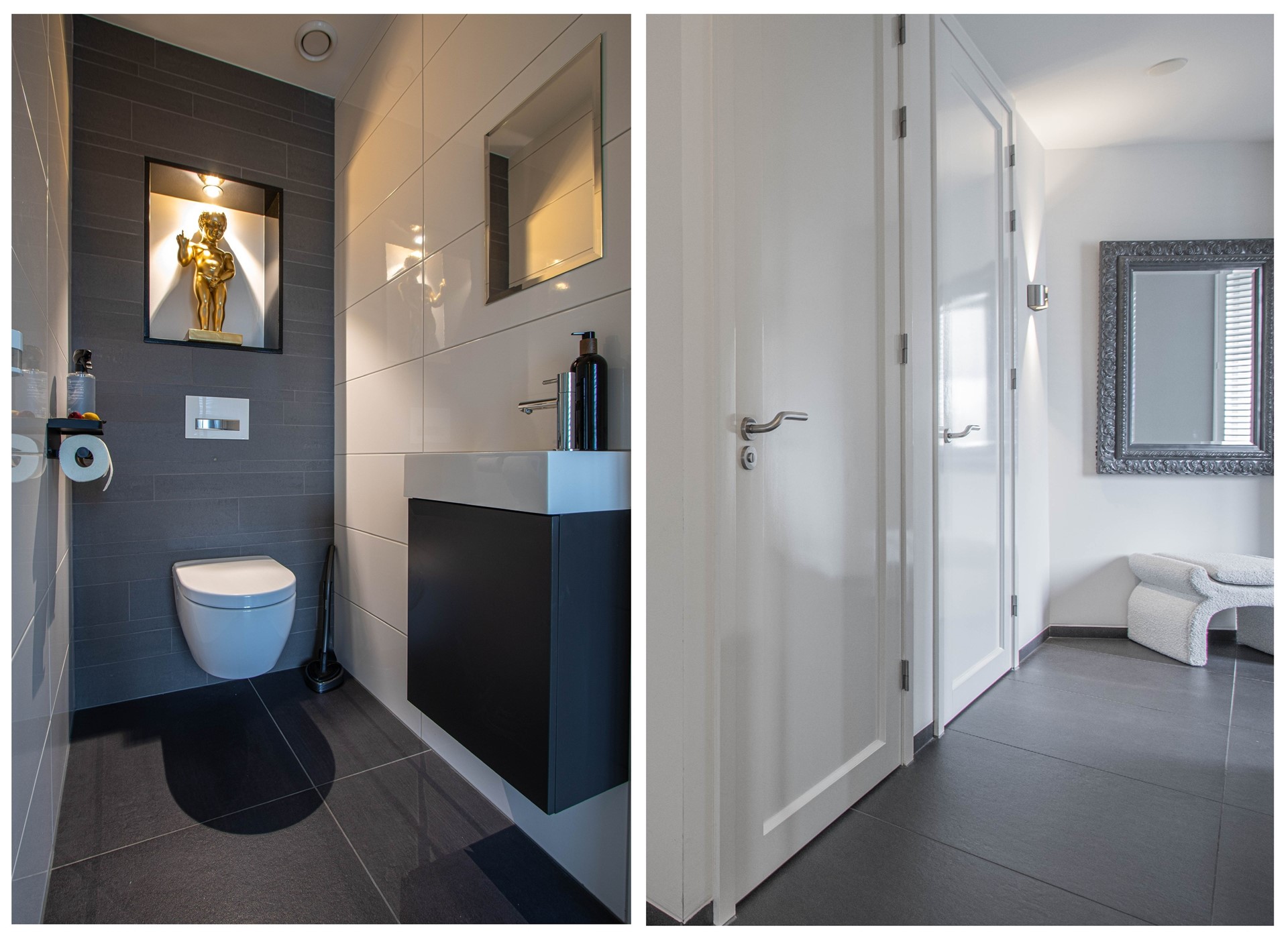 - Geheel betegelde badkamer met grote inloopdouche, dubbele wastafel met spiegelkast, opbergkast, 2e toilet – design radiator en comfortabele vloerverwarming;