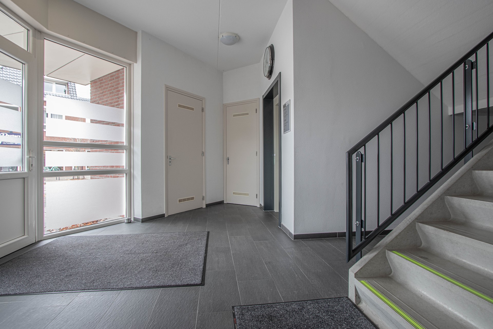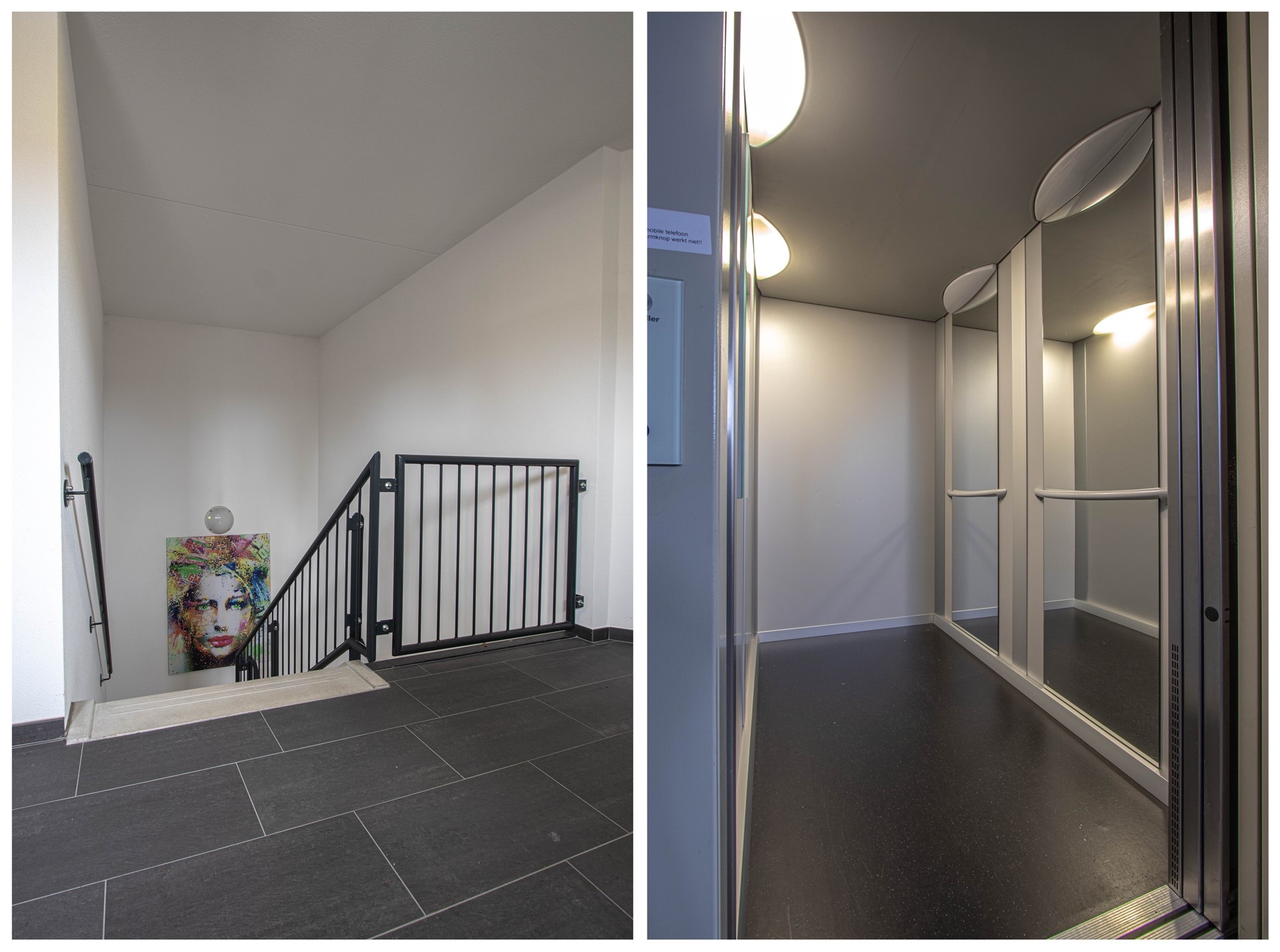 Centrale entree/trappenhal, liftinstallatie, brievenbussen, video intercominstallatie – privé berging - gezamenlijke (fietsen)berging en eigen parkeergarage.