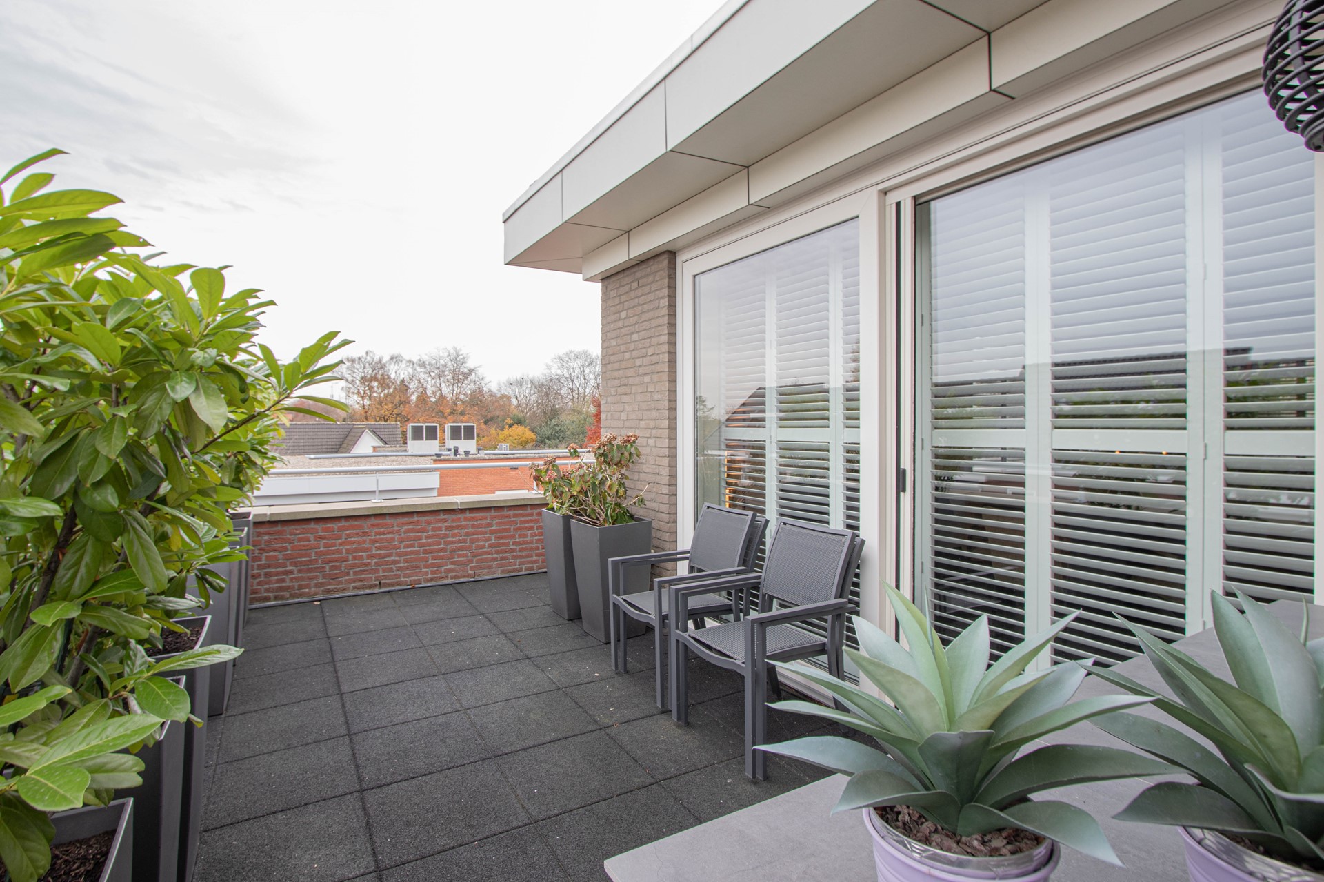 Via de centrale entree komt u binnen in dit keurig onderhouden appartementencomplex. Hier bevinden zich de trappenhal, liftinstallatie, brievenbussen, video-intercominstallatie en privé (fietsen)berging. Dit prachtige appartement is gelegen op de 2e verdieping is ca. 138m² en heeft een royaal dakterras. Direct bij binnenkomst in de royale ontvangsthal/entree zie je dat dit appartement door de huidige bewoners met zorg en aandacht is bewoond. Het appartement zelf heeft een ruime hal met bijkeuken met witgoedaansluitingen en technische installaties - gastentoilet en toegang tot de overige vertrekken. De lichte L-vormige woon-/eetkamer is royaal opgezet en voorzien van twee schuifpuien naar de twee dakterrassen. De woonkeuken is modern uitgevoerd met hoogglans fronten, inductiekookplaat, koffiezetapparaat (Miele), combimagnetron, vaatwasser, koelkast, barretje en verlaagd plafond met ledverlichting. Er zijn twee comfortabele slaapkamers, waarvan de masterbedroom een serieuze inbouw schuifkastenwand. De FANTASTISCHE geheel betegelde badkamer beschikt over een design inloop(regen)douche, dubbele wastafelmeubel, spiegelkast, design radiator en een tweede toilet. Door het hele appartement ligt comfortabele vloerverwarming met antraciet plavuizenvloer m.u.v. de masterbedroom die is v.v. een hoogwaardige laminaatvloer met V-groef. Grotendeels kunststof kozijnen met isolerende beglazing rondom m.u.v. de schuifpuien die zijn van hardhout. Verder ook stijlvolle houten schutters bij iedere raam/pui. Beneden treft men ook een eigen parkeergarage (ca. 5,68 x 3,15= 18m²) met elektrische bedienbare poort en algemene fietsenberging. Als je op zoekt bent naar een luxe instapklaar appartement met grote dakterrassen in het gezellige centrum van Heythuysen kun je gelijkvloers en bovenal comfortabel wonen.