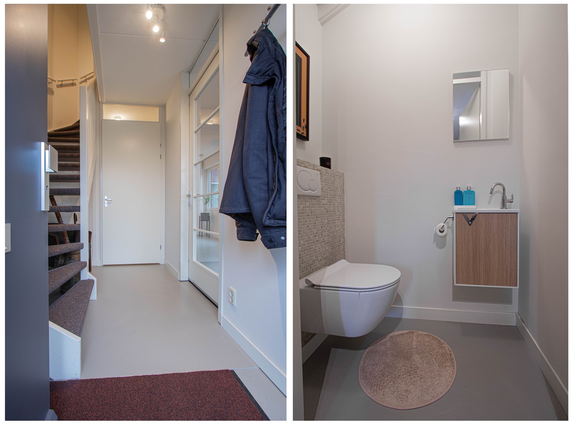 Via de entree kom je binnen in de ontvangsthal met meterkast, garderobe, moderne gastentoilet, toegang tot de woonkamer en de trapopgang naar de eerste verdieping. De trap is afgewerkt met antraciet vloerbedekking. De gehele begane grond is voorzien van een lichte gietvloer met comfortabele vloerverwarming, airco (2022) en strak stucwerk op wanden en plafonds, wat zorgt voor een rustige en moderne uitstraling. Aan de voorzijde van de woning bevindt zich de eerste woonkamer, licht en sfeervol door de grote raampartijen. Deze leefruimte staat in open verbinding met de moderne woonkeuken (eind 2020), uitgevoerd met een composiet werkblad en voorzien van diverse inbouwapparatuur, waaronder een inductiekookplaat, oven, koelkast, vaatwasser en stoomoven. Verder is er nog een handige berging met de witgoedaansluitingen en cv-opstelling, mooie aanvulling voor proviand en poetspullen e.d. Aan de achterzijde van de woning bevindt zich een multifunctionele ruimte (thans 2e zithoek voor de kinderen), waar je ook een mooie werk-/ of speelplek van kunt maken. Aangrenzend ligt de prachtig ruime slaapkamer op de begane grond, voorzien van riante (schuif)kastenwanden en SUPER-DE-LUXE badkamer (eind 2020) met grote inloop(regen)douche, 2e toilet, vaste wastafelmeubel en elektrische designradiator alsook de vloerverwarming. Middels de openslaande tuindeuren vanuit de eetkamer is de patiotuin aanwezig met een (fietsen)berging en eigen achterom vanuit de oprit waar u eenvoudig een personenauto op eigen terrein kunt parkeren. De tuin ons onderhoudsvriendelijk aangelegd en geheel omsloten waardoor optimale privacy.
