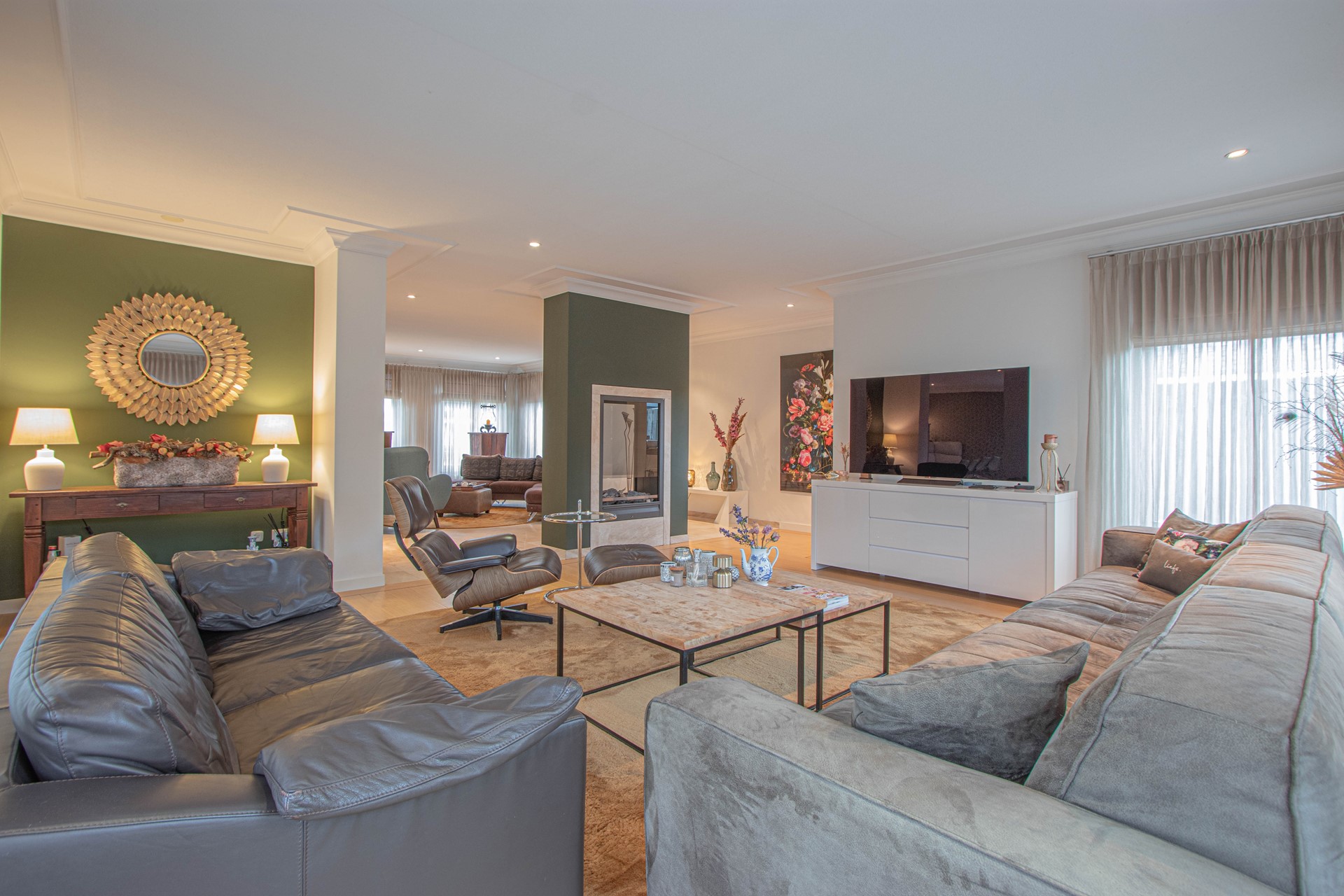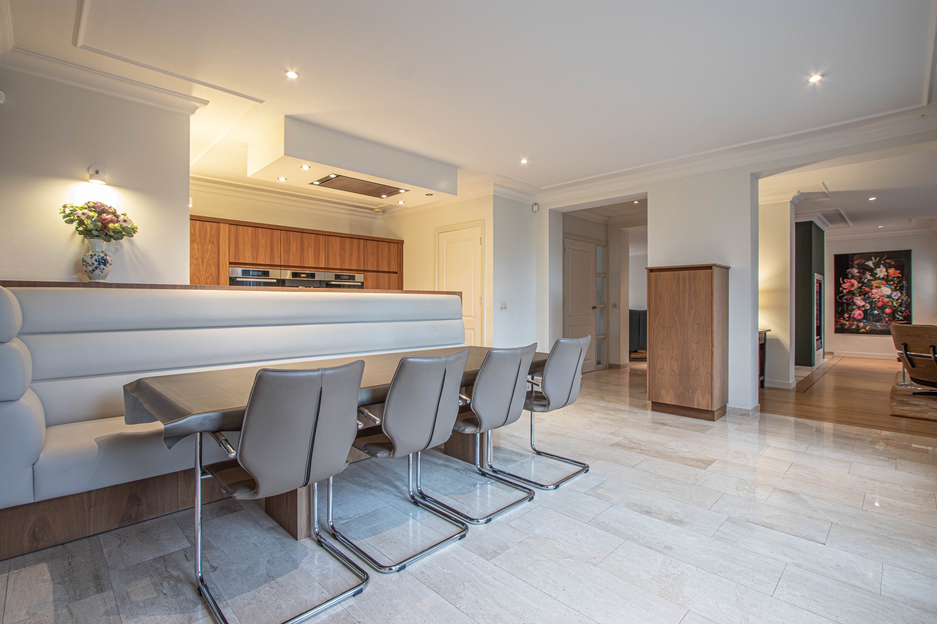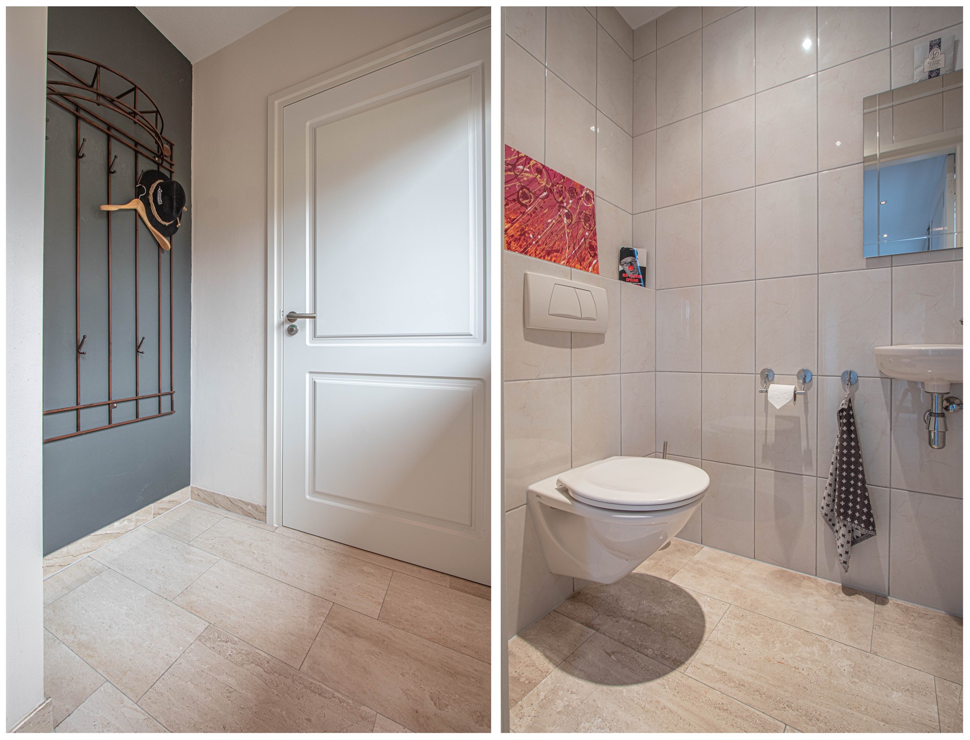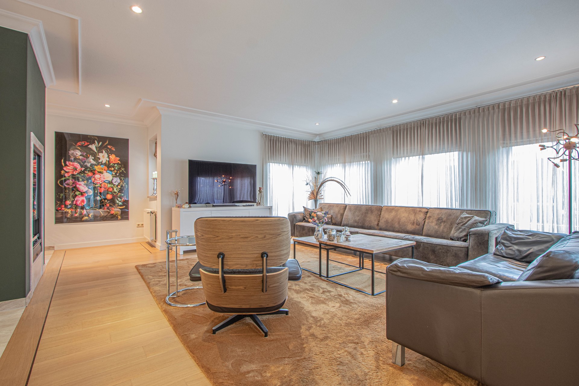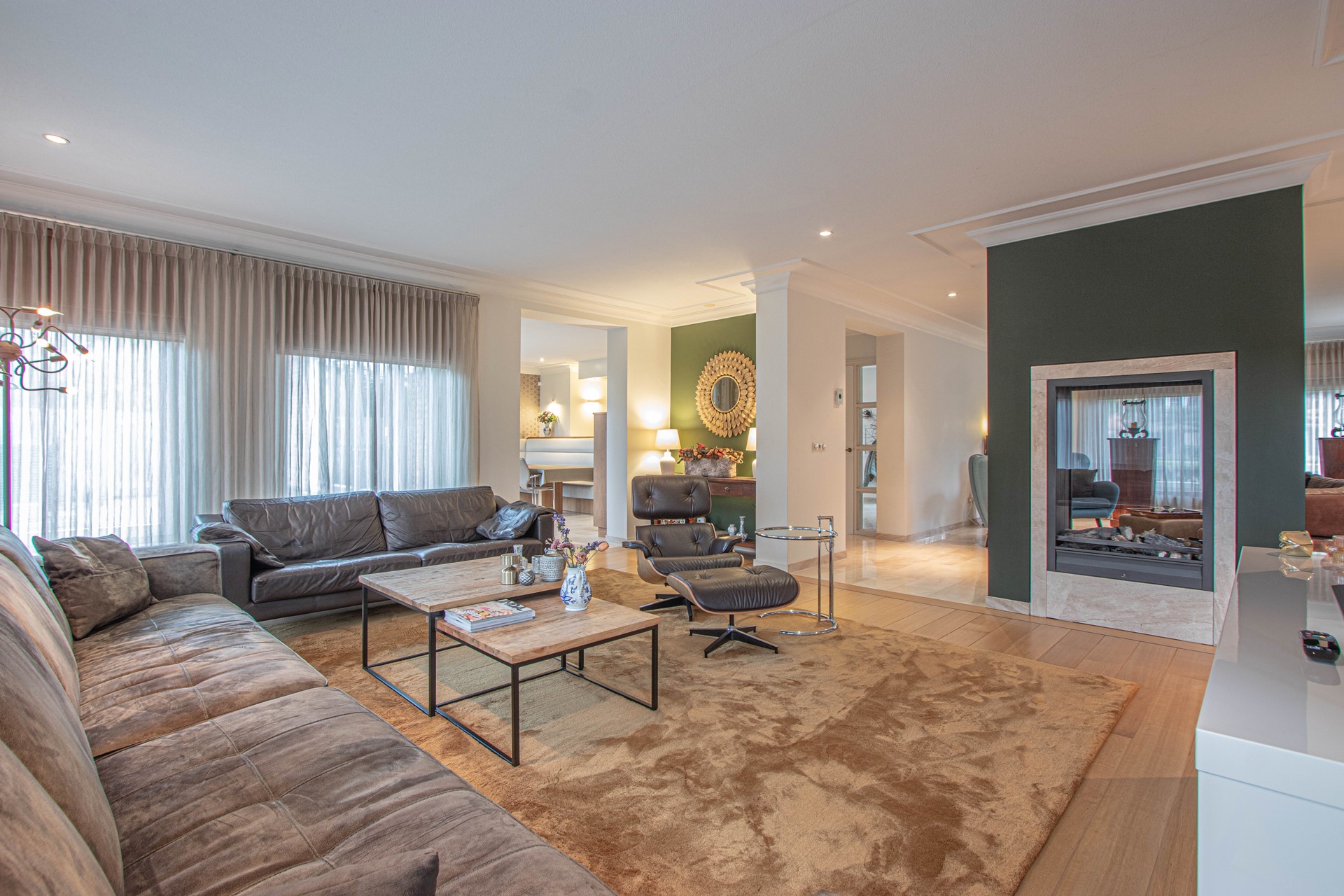 Direct bij binnenkomst in de ontvangsthal ademt deze woning sfeer en gezelligheid. Hier is de garderobe, meterkast en het gastentoilet. Via een deur kom je uit in de zitkamer met sfeervolle gashaard die aansluit bij de woonkamer. Deze mooie ruimtes zijn ideaal ingedeeld. In de SUPER-DE-LUXE leefkeuken welke is uitgerust met alle denkbare hoogste klasse inbouwapparatuur is de eetkamer met grote bank. Door twee openslaande deuren staat deze ruimte direct in verbinding met de in 2024 aangelegde tuin. Via een tussenportaal is er toegang tot een eigen werkkamer/kantoorruimte/praktijkruimte, welke ook ideaal als speelkamer voor kinderen of een extra slaapkamer beneden kan dienen. In het tussenportaal is een 2e garderobe en 2e toiletruimte met inpandig toegang tot de dubbele garage waar je met gemak twee auto’s kunt parkeren. De garage heeft twee elektrisch bedienbare sectionaalpoorten.