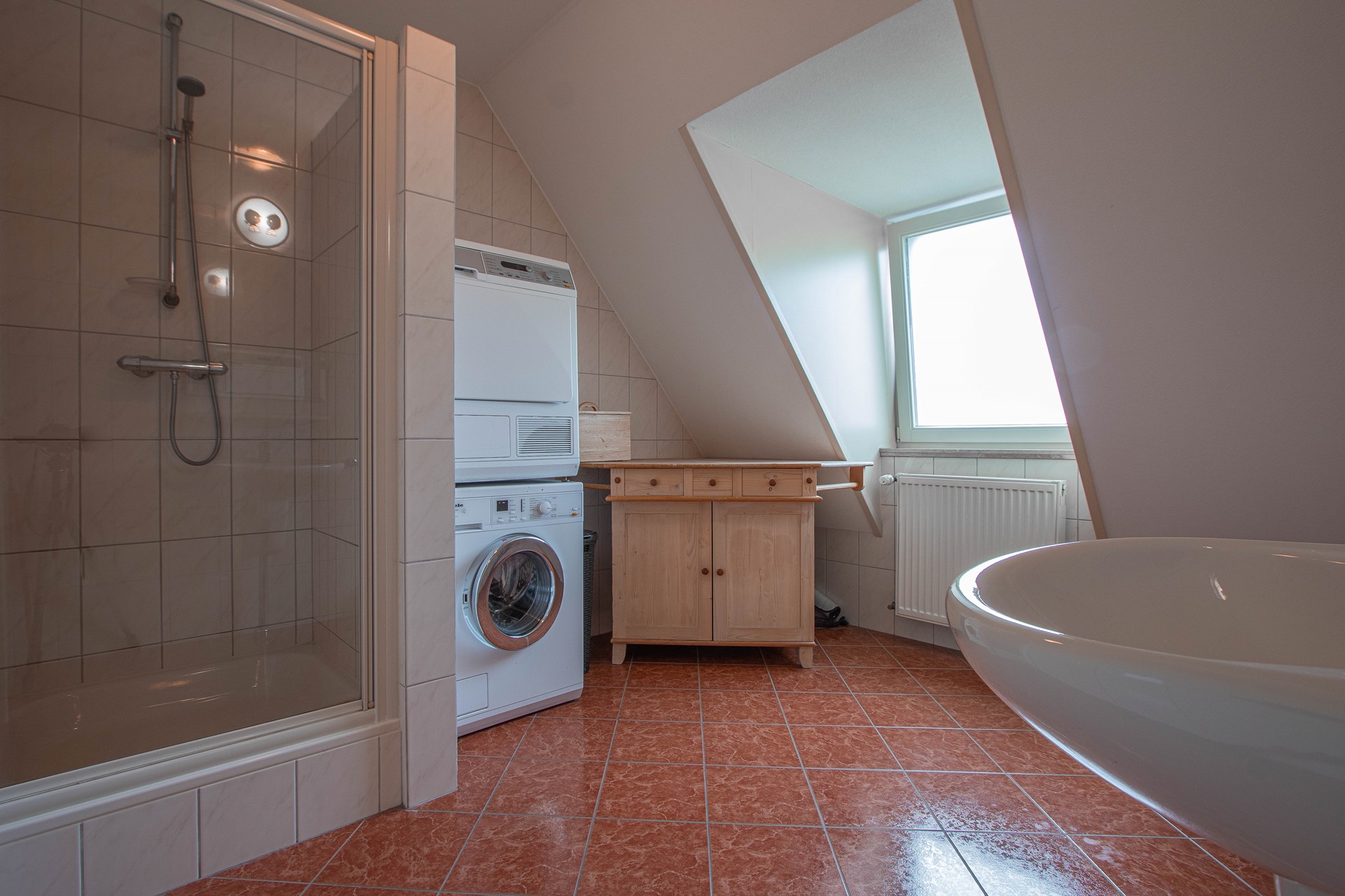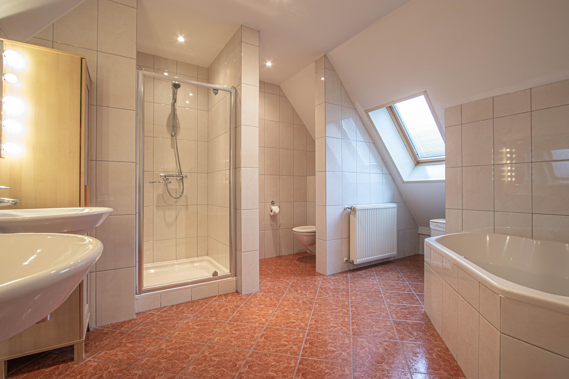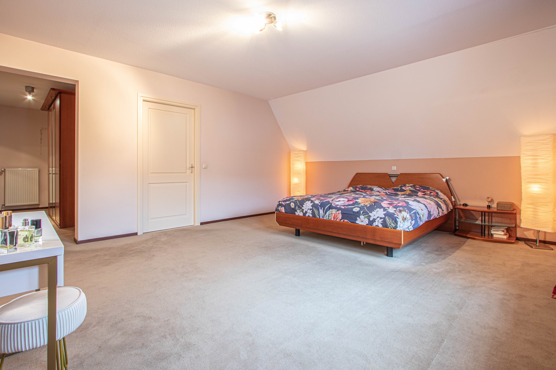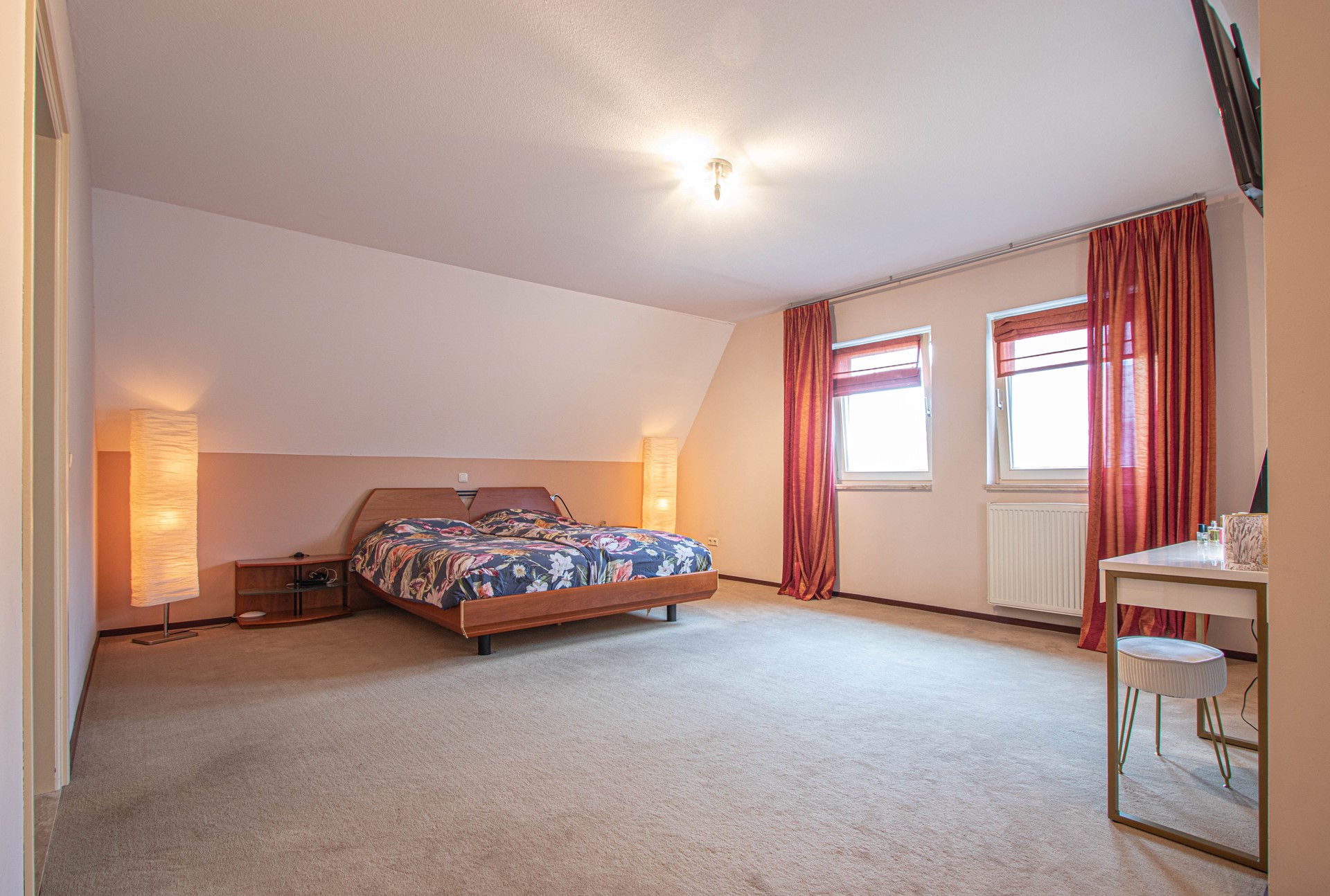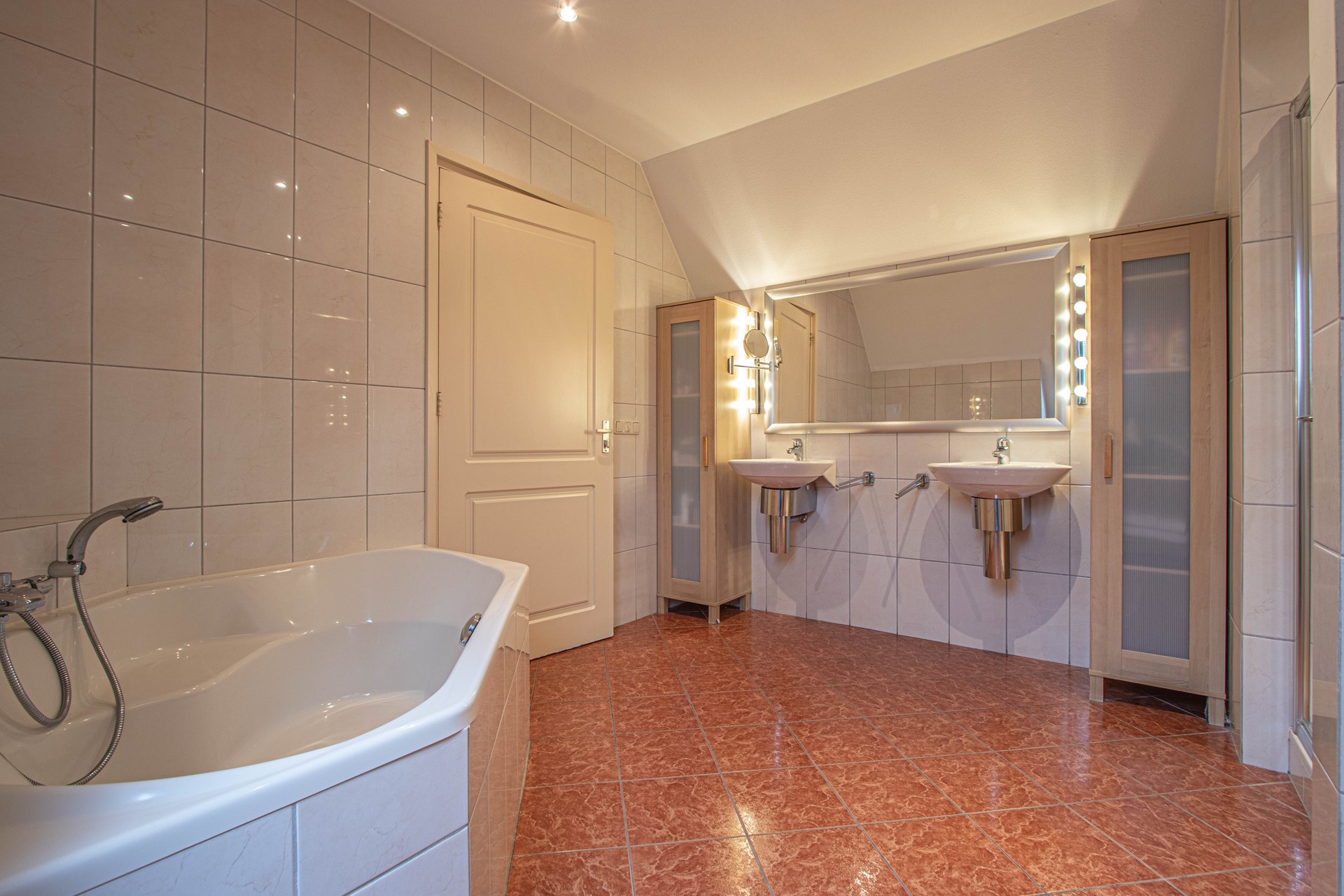 De fraaie trappenhal biedt toegang tot een royale overloop met airco (2021) om de warmere zomerdagen te verkoelen. Op de verdieping zijn vier ruime slaapvertrekken. De masterbedroom (airco 2021) heeft een grote inloop(kleding)kast en ensuite badkamer met ligbad, aparte douche, 3e wc, dubbele wastafel en comfortabele vloerverwarming. Aan de rechterzijde ligt ook nog een 2e badkamer met douchecabine, 4e toilet, vaste wastafel en witgoedaansluitingen. Alle slaapkamers zijn ruim opgezet en dus ideaal voor het grotere gezin. Middels een vlizotrap kom je op de 2e verdieping welke perfect dient als opbergzolder en waar zich ook de cv-installatie (Nefit, bj. 2022) bevindt.