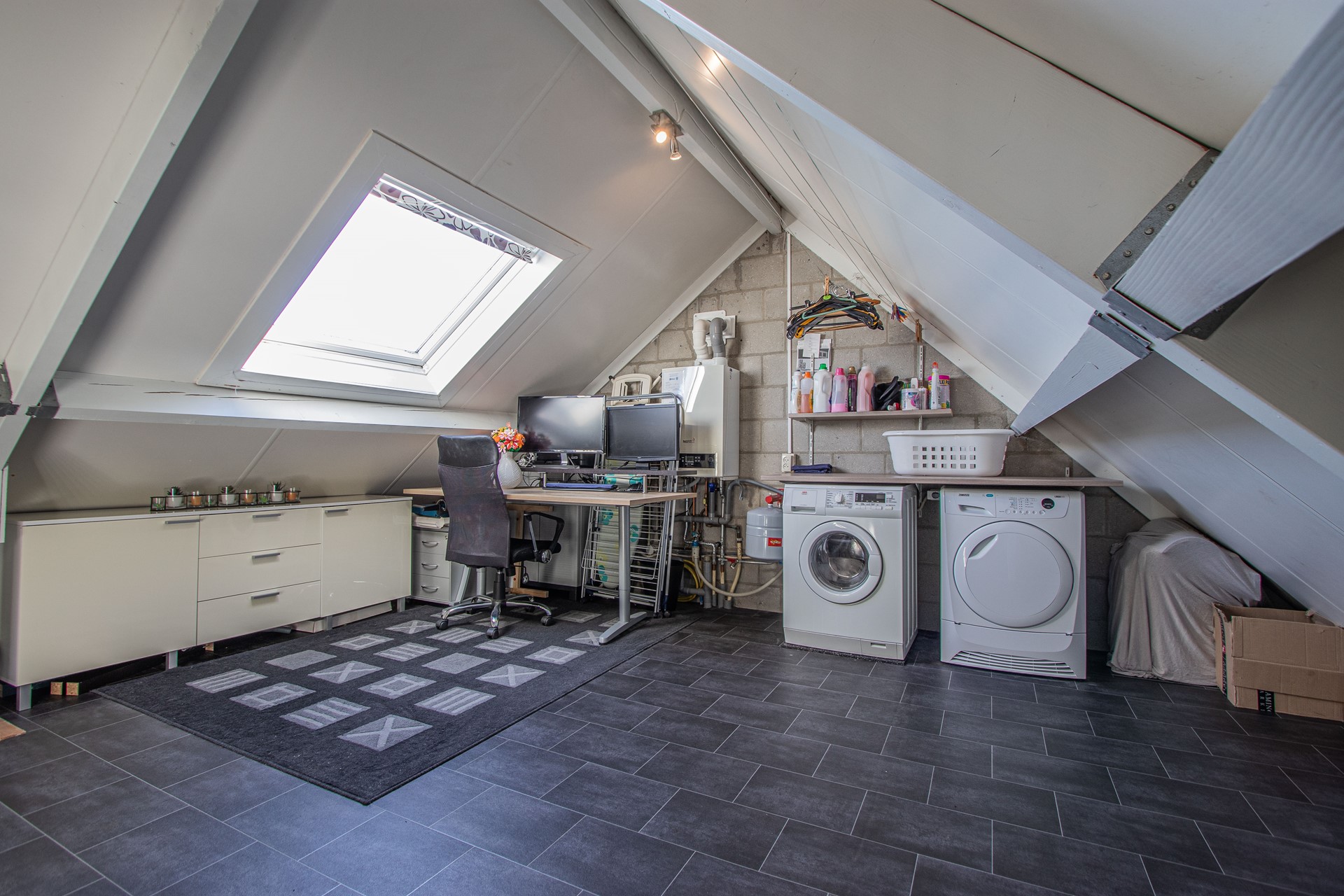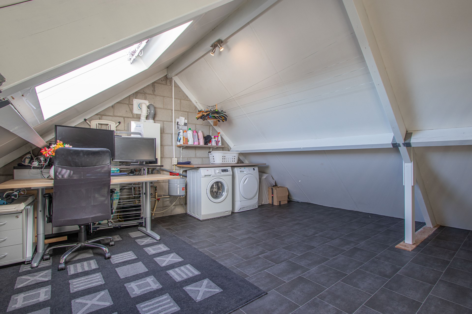 Overloop bereikbaar middels vaste trap, opbergruimte, was-/ en CV ruimte en 4e (slaap)kamer (mogelijkheid).