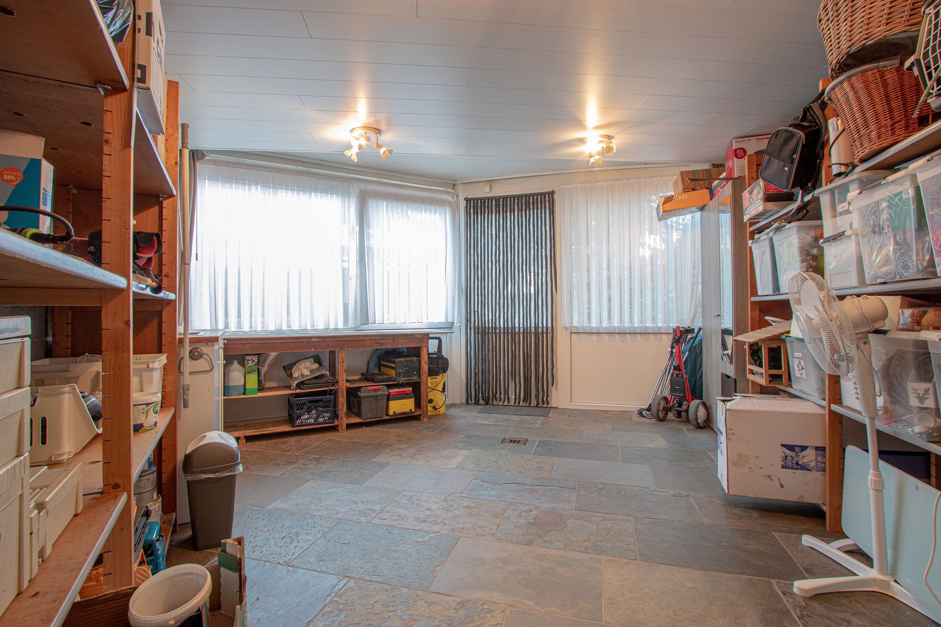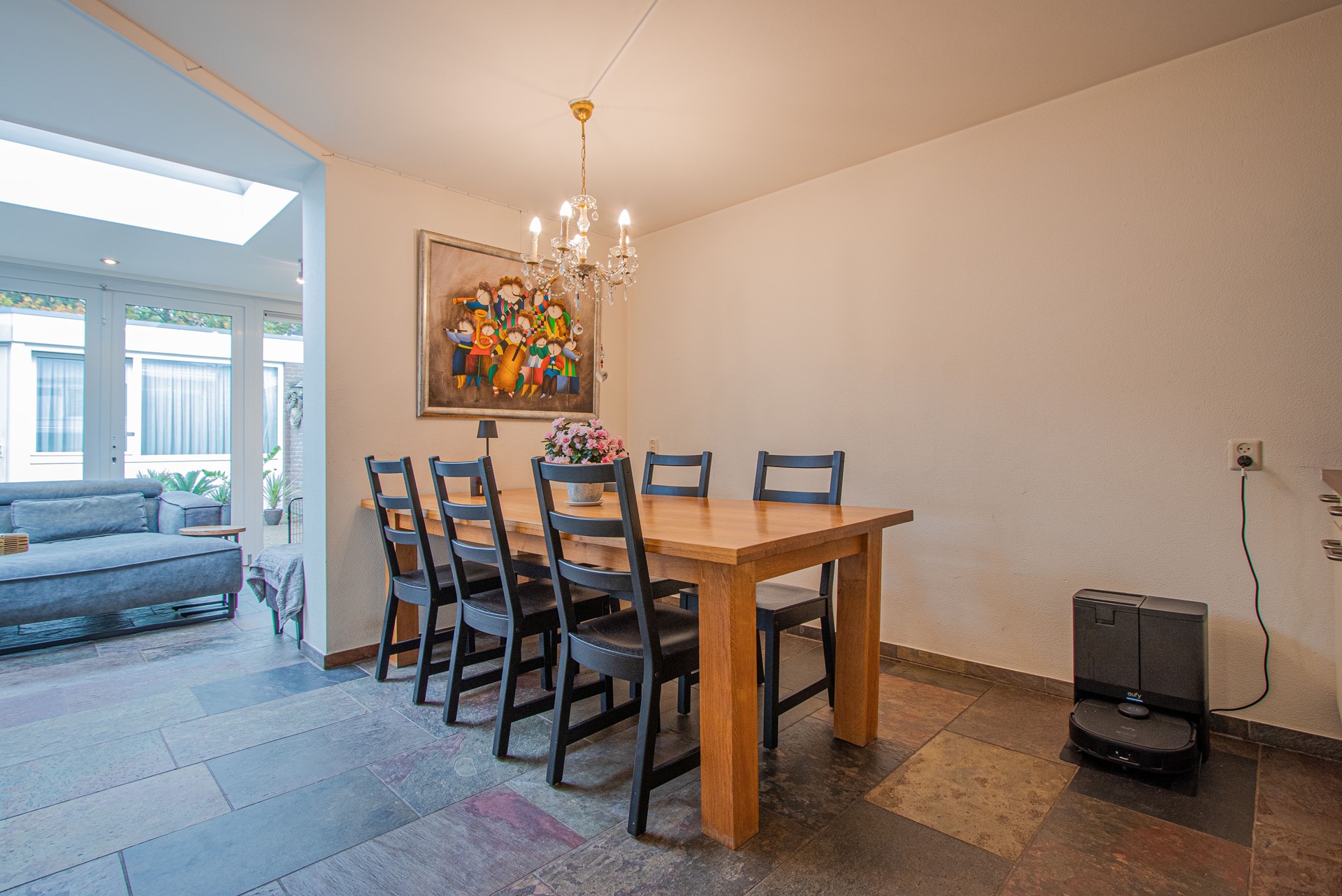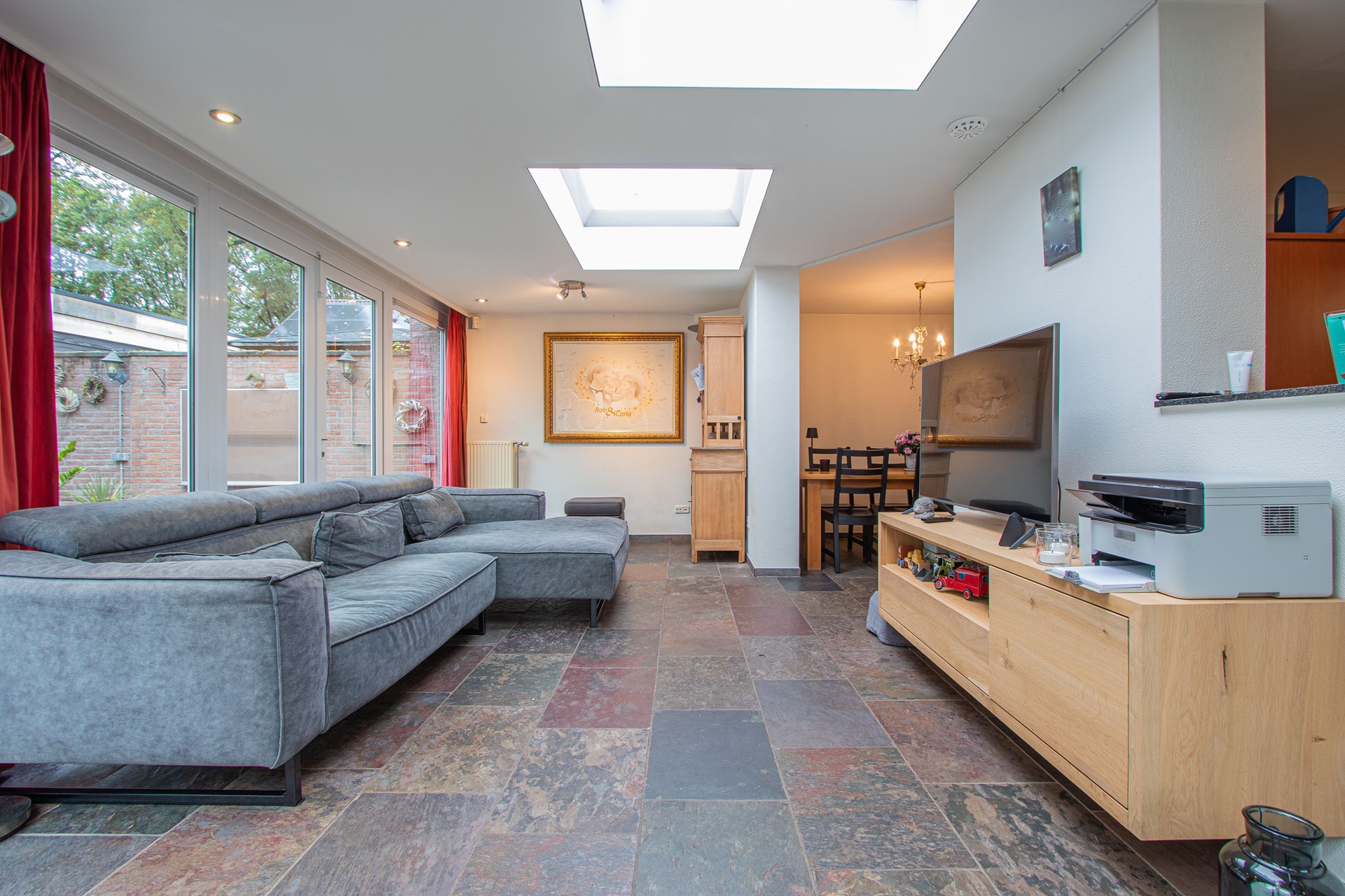 Bij binnenkomst kom je uit in de royale ontvangsthal met garderobe vanwaar toegang tot de zitkamer met speelse erker. Mede gezien het feit dat de huidige bewoners een uitbouw hebben gecreëerd is het een ideale woning voor een groot gezin. In de zitkamer is een sfeervolle gashaard die de ruimtes fijn opdeelt. De keuken ligt centraal in deze ruimte vanwaar met iedere ruimte een connectie aanwezig is. De keuken is uitgevoerd in lichte kleuropstelling met een eigentijds natuurstenen werkblad en diverse inbouwapparatuur. Grenzend aan de keuken is de eetkamer en tuinkamer maar zoals gezegd ook contact met de zitkamer voor. Mede door de speelse indeling heel functioneel te gebruiken en de uitbouw is heerlijk licht middels de vele raampartijen, waarbij de tuin een verbinding creëert. Middels het tussenportaal bij de keuken en eetkamer is een praktische wasruimte bereikbaar alsook het gastentoilet met fonteintje. De inpandige garage is ideaal als opbergruimte en hier bevinden zich de technische installaties. De multifunctionele buitenruimte is perfect voor de ondernemer, ouderen die levensloopbestendig willen wonen of een speelhonk voor de kinderen. Deze ruimte is v.v. een extra toiletruimte en er bestaat een mogelijkheid hier een doucheruimte en wastafel te realiseren, zodat hij als slaapvertrek kan worden gebruikt. Uitgekomen op de verdieping treft men maar liefst 5 slaapkamers en een complete badkamer die is uitgerust met ligbad, douche, dubbele wastafel, 3e toilet en handige opbergkast. Gezien het aantal slaapkamers ook ideaal voor het gezin met meerdere kinderen. Qua opbergruimte is er nog een tweede verdieping middels vlizotrap bereikbaar, waar voldoende plek is voor het diverse spullen.