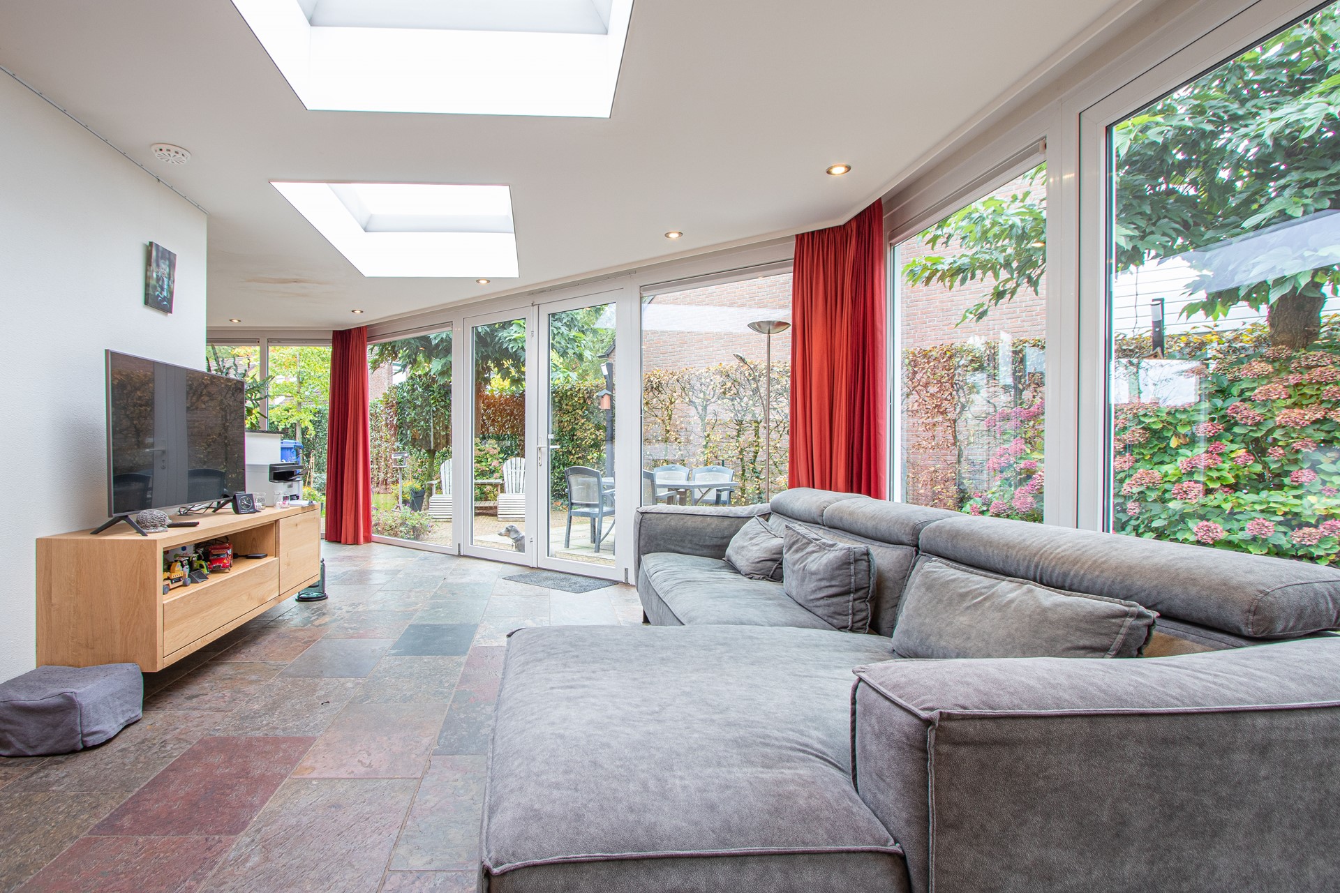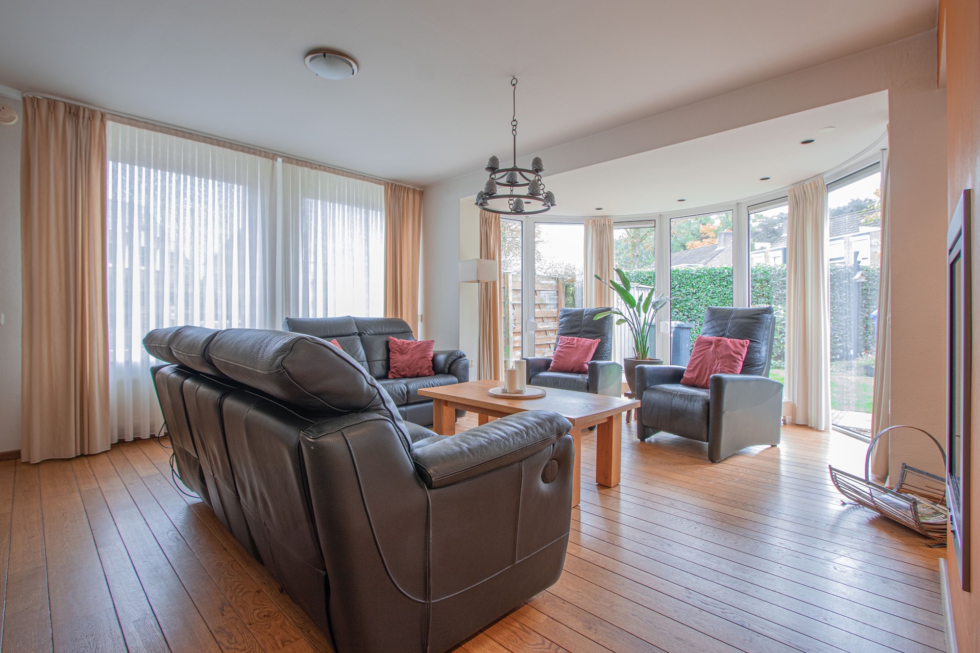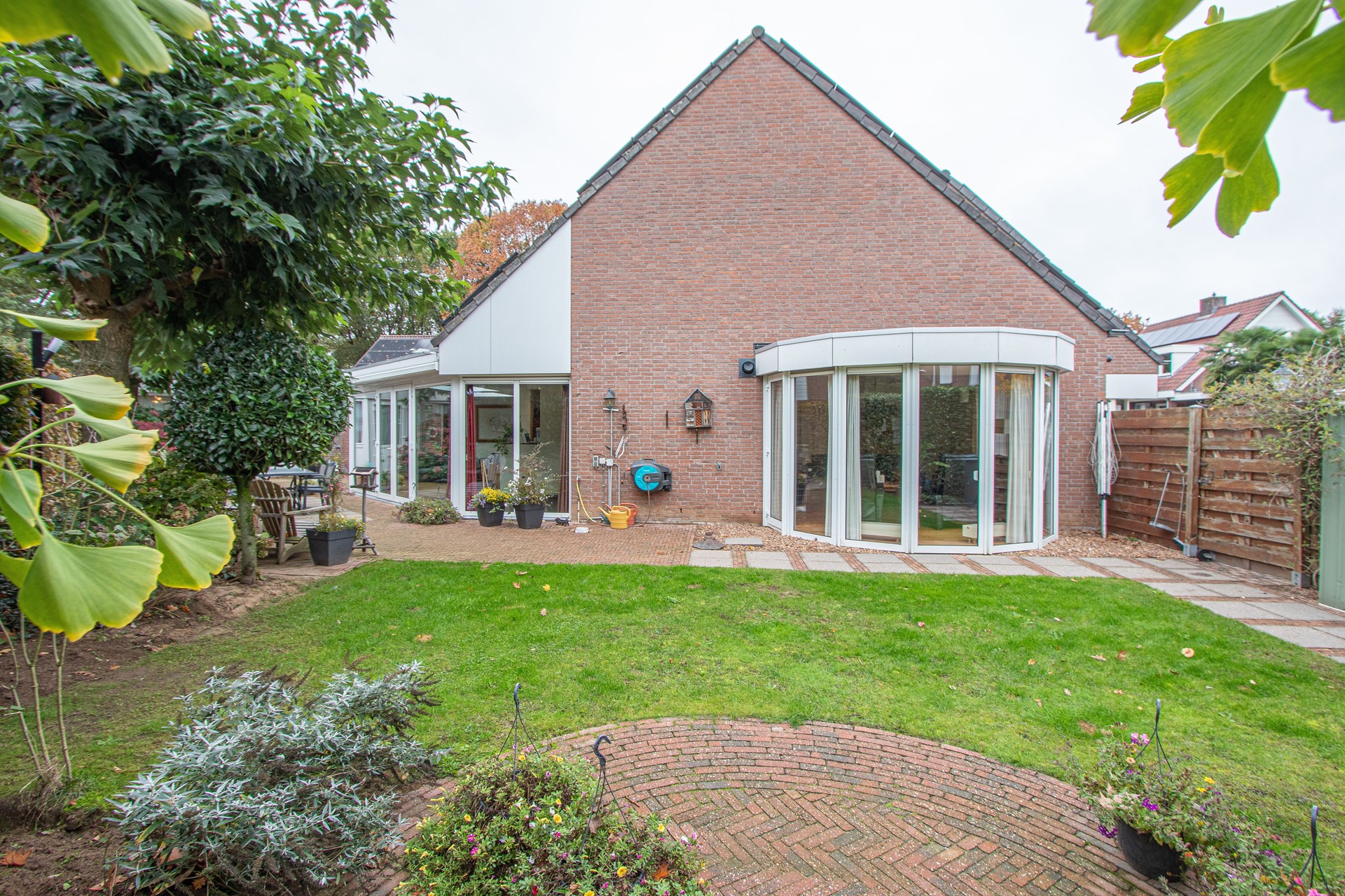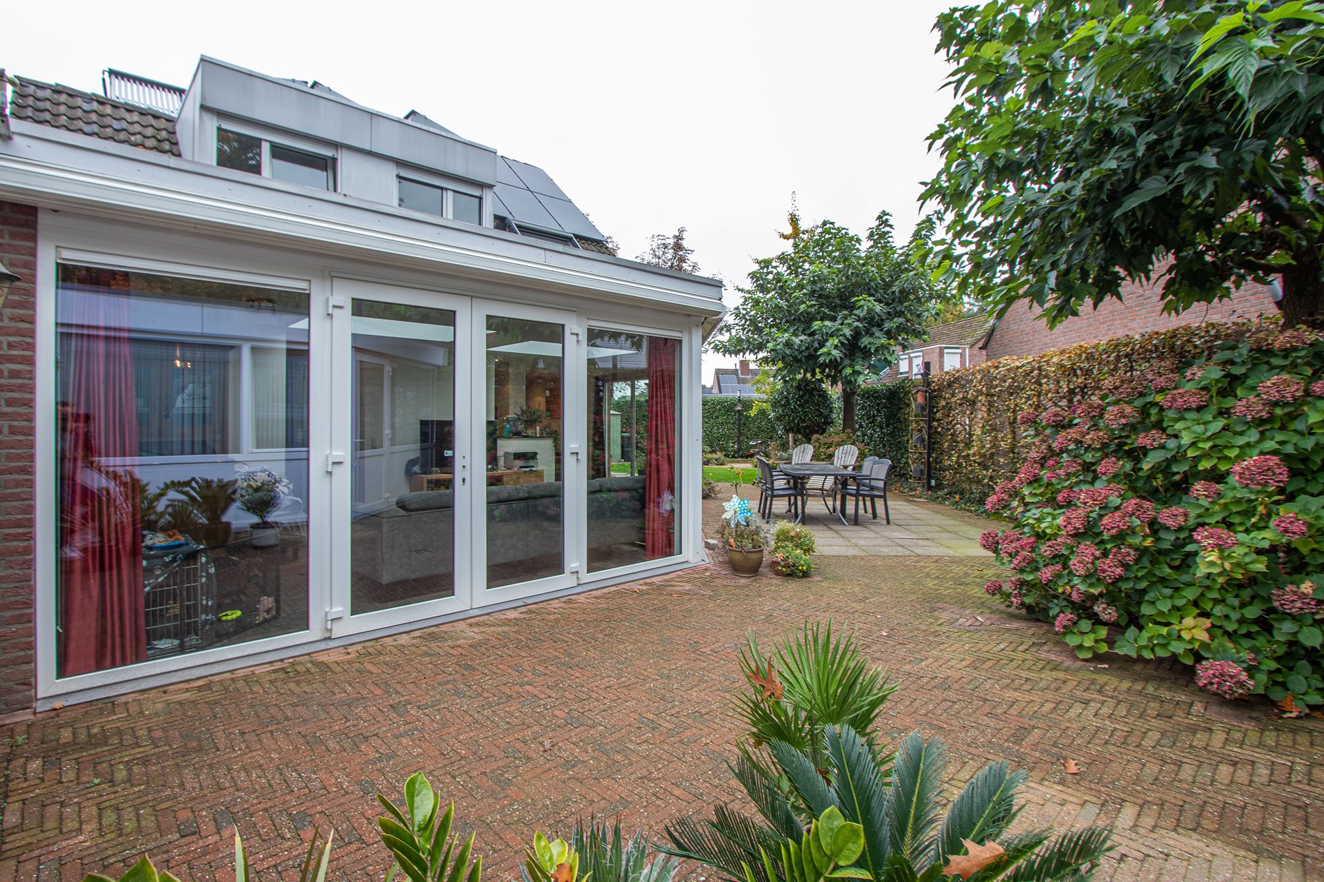 Eenmaal buiten heb je een geheel omsloten – bovenal privacy biedende achtertuin met eigen achterom met borders, graszode en een tweetal terrassen waar je in de betere dagen heerlijk kunt genieten van al het natuurschoon. Dit alles ligt op loopafstand van de bossen waar je één bent met de natuur. De straat is rustig en hier komt enkel bestemmingsverkeer. De huidige bewoners hebben veel aandacht besteed qua verduurzaming waarbij er inmiddels muur, vloer en dakisolatie aanwezig zijn – 39 zonnepanelen – warmtepomp – zonneboiler – airco waarbij de stookkosten aantrekkelijk laag zijn.