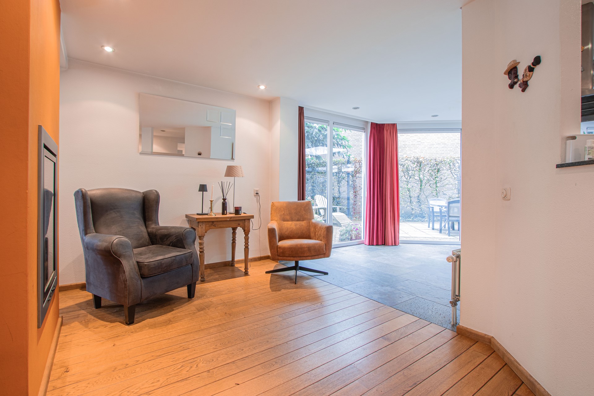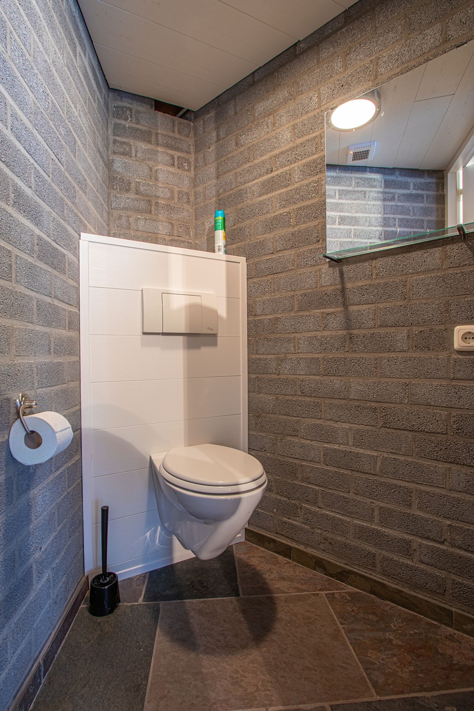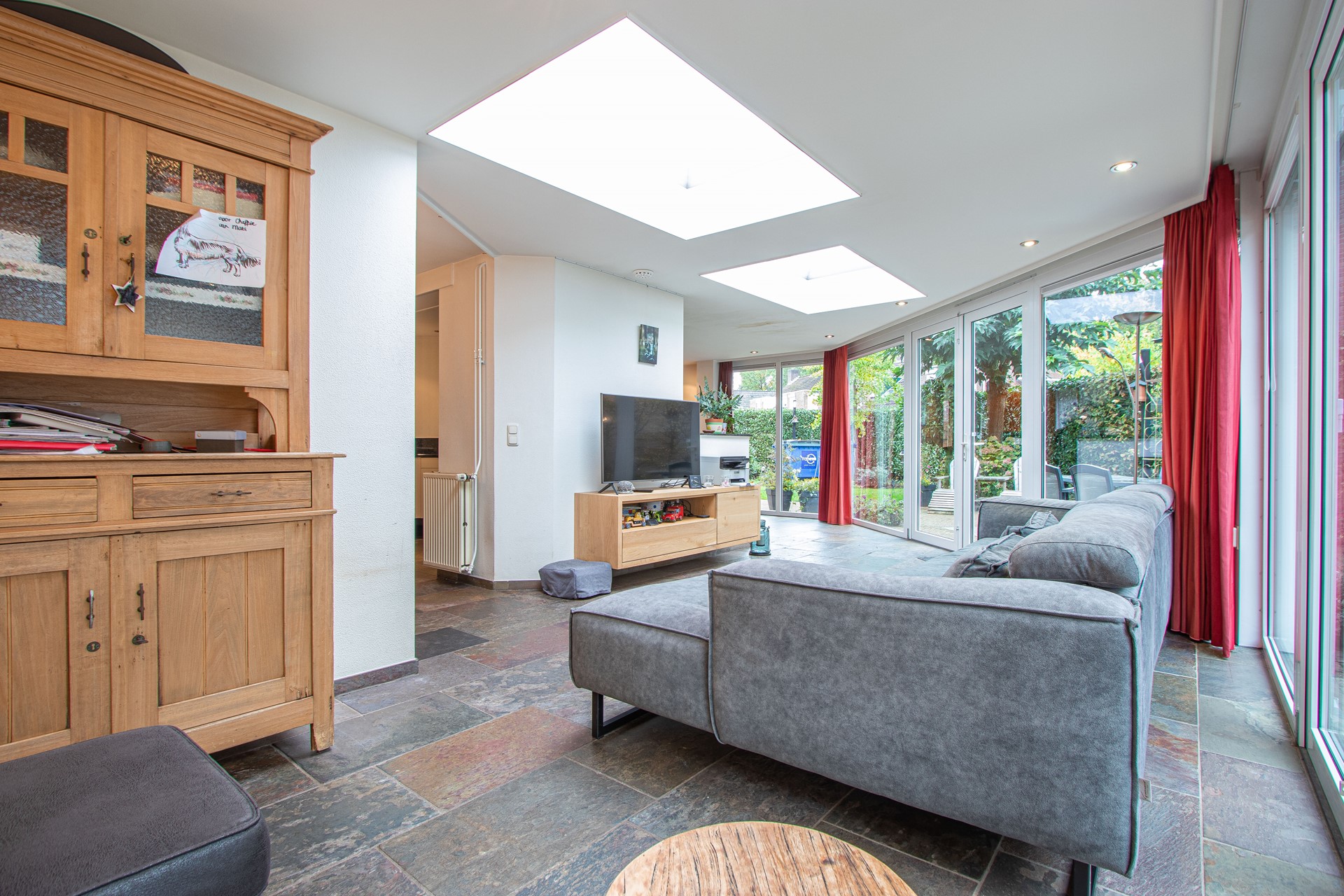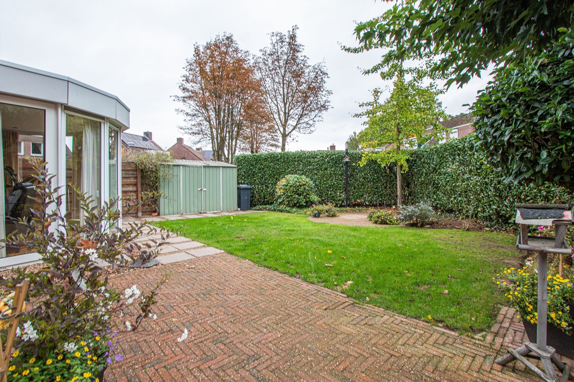 Eenmaal buiten heb je een geheel omsloten – bovenal privacy biedende achtertuin met eigen achterom met borders, graszode en een tweetal terrassen waar je in de betere dagen heerlijk kunt genieten van al het natuurschoon. Dit alles ligt op loopafstand van de bossen waar je één bent met de natuur. De straat is rustig en hier komt enkel bestemmingsverkeer. De huidige bewoners hebben veel aandacht besteed qua verduurzaming waarbij er inmiddels muur, vloer en dakisolatie aanwezig zijn – 39 zonnepanelen – warmtepomp – zonneboiler – airco waarbij de stookkosten aantrekkelijk laag zijn.
