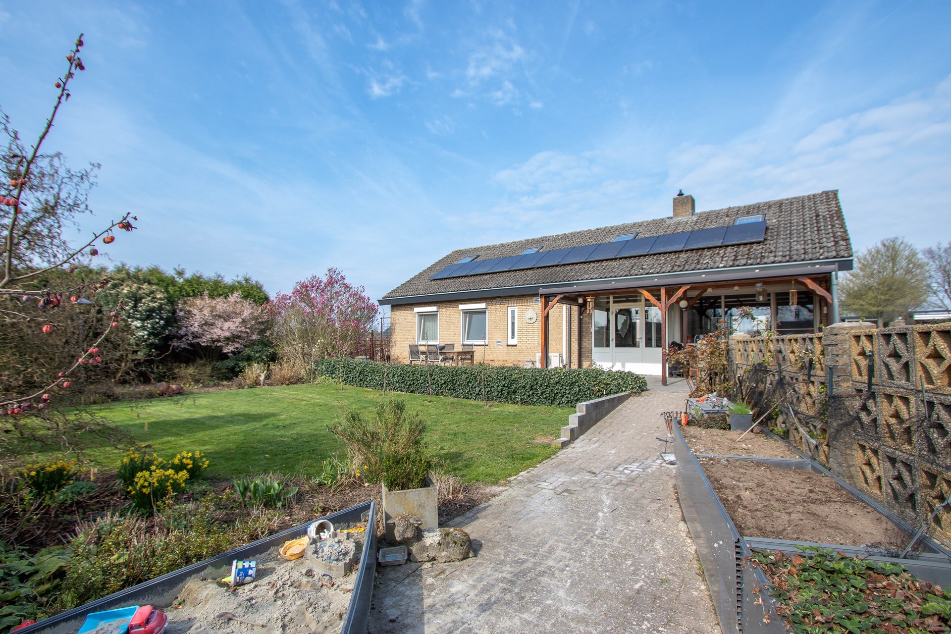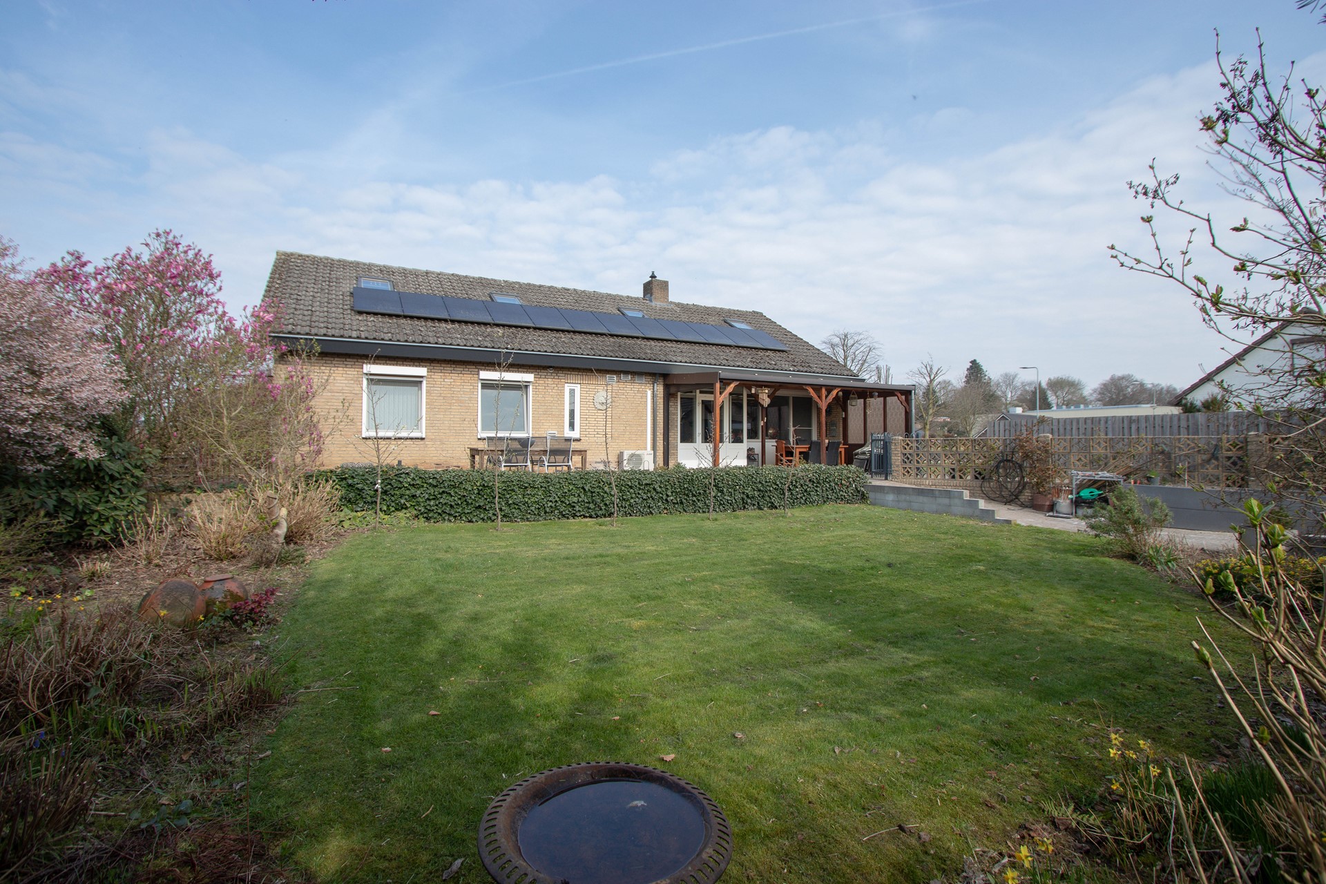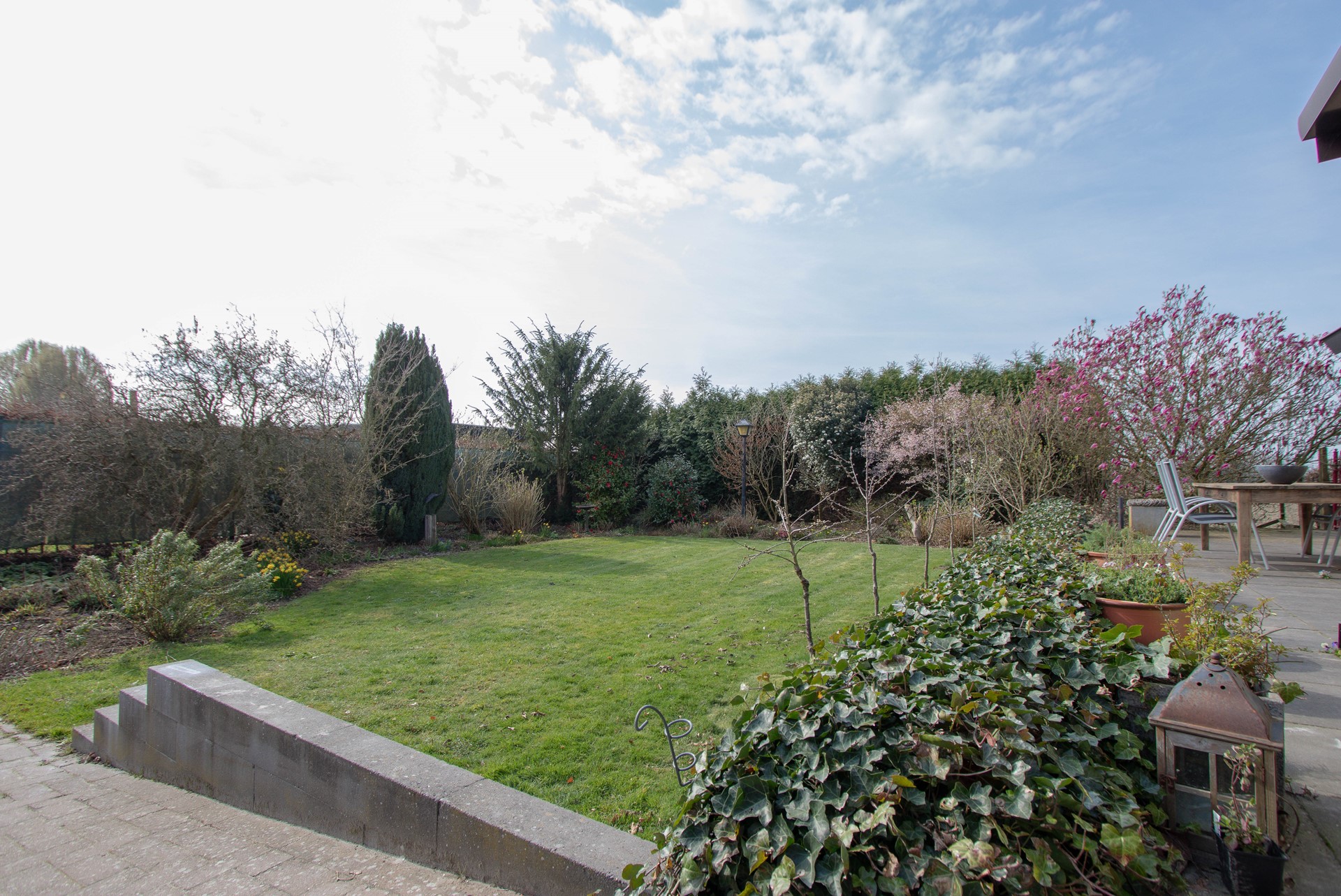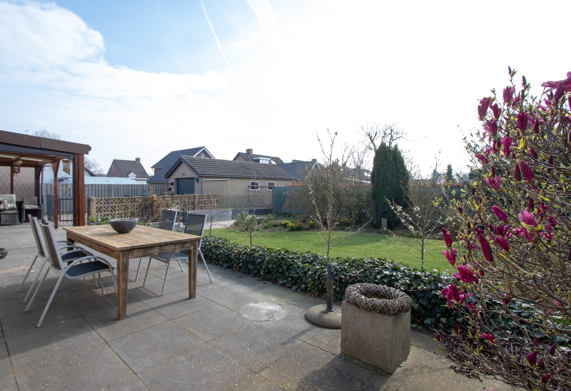 De tuin rondom is parkachtig aangelegd met een prachtige terrasoverkapping, graszode, eigen achterom en is omsloten. Aan de linkerzijde is een extra brede oprit, welke ideaal is voor caravan, camper of werkbus.