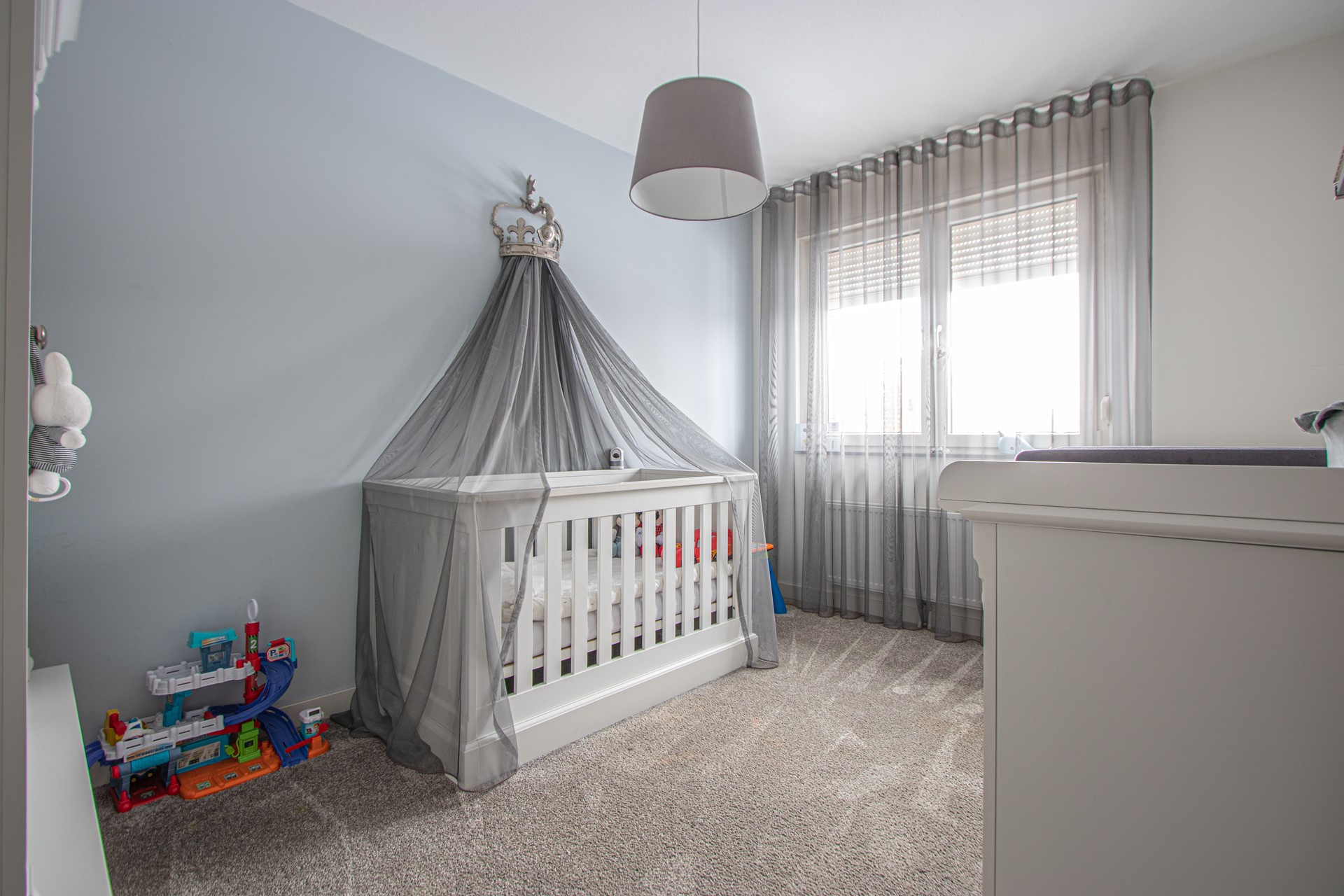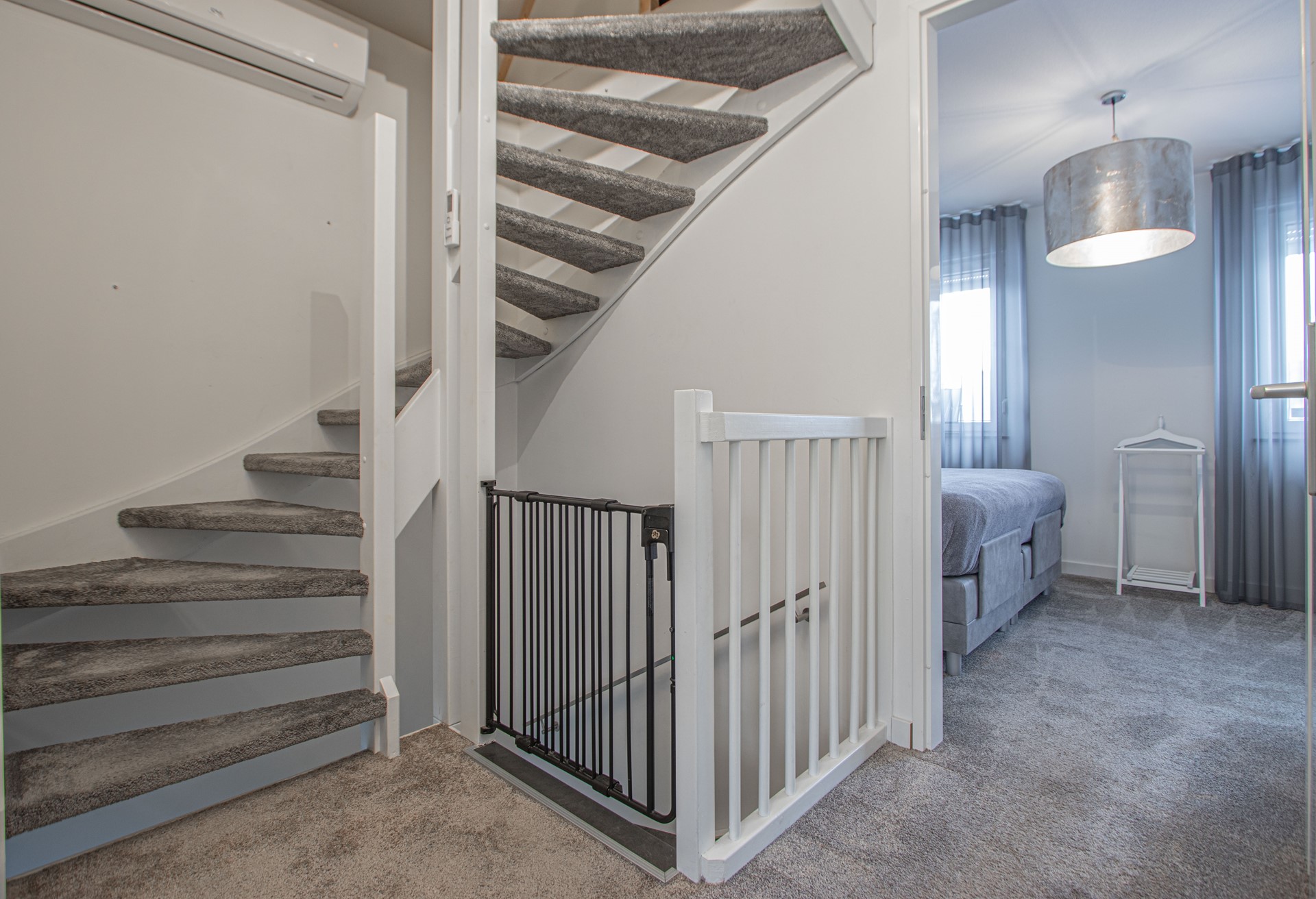 Vaste trap naar zolderverdieping met overloop – cv-/ en WTW opstelling en derde slaapkamer met airco.