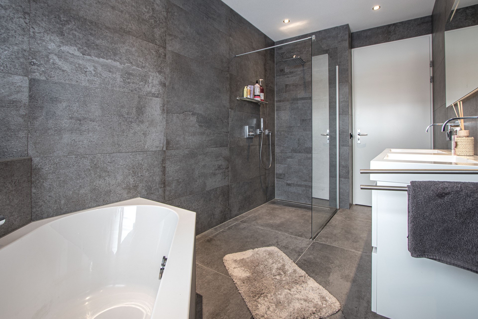 Via de vaste trap in de hal bereik je de overloop van de eerste verdieping met airco installatie. Op deze verdieping bevinden zich twee ruime slaapkamers, waarvan één royale master bedroom met serieuze inloop(kleding)kast. De PRACHTIGE badkamer is hoogwaardig uitgevoerd en voorzien van een ruime inloop(regen)douche, een dubbele wastafel, grote spiegel met verlichting, hoekbad en een tweede toilet. Daarnaast beschikt de badkamer over vloerverwarming, wat zorgt voor extra comfort en in tijdloze uitvoering.