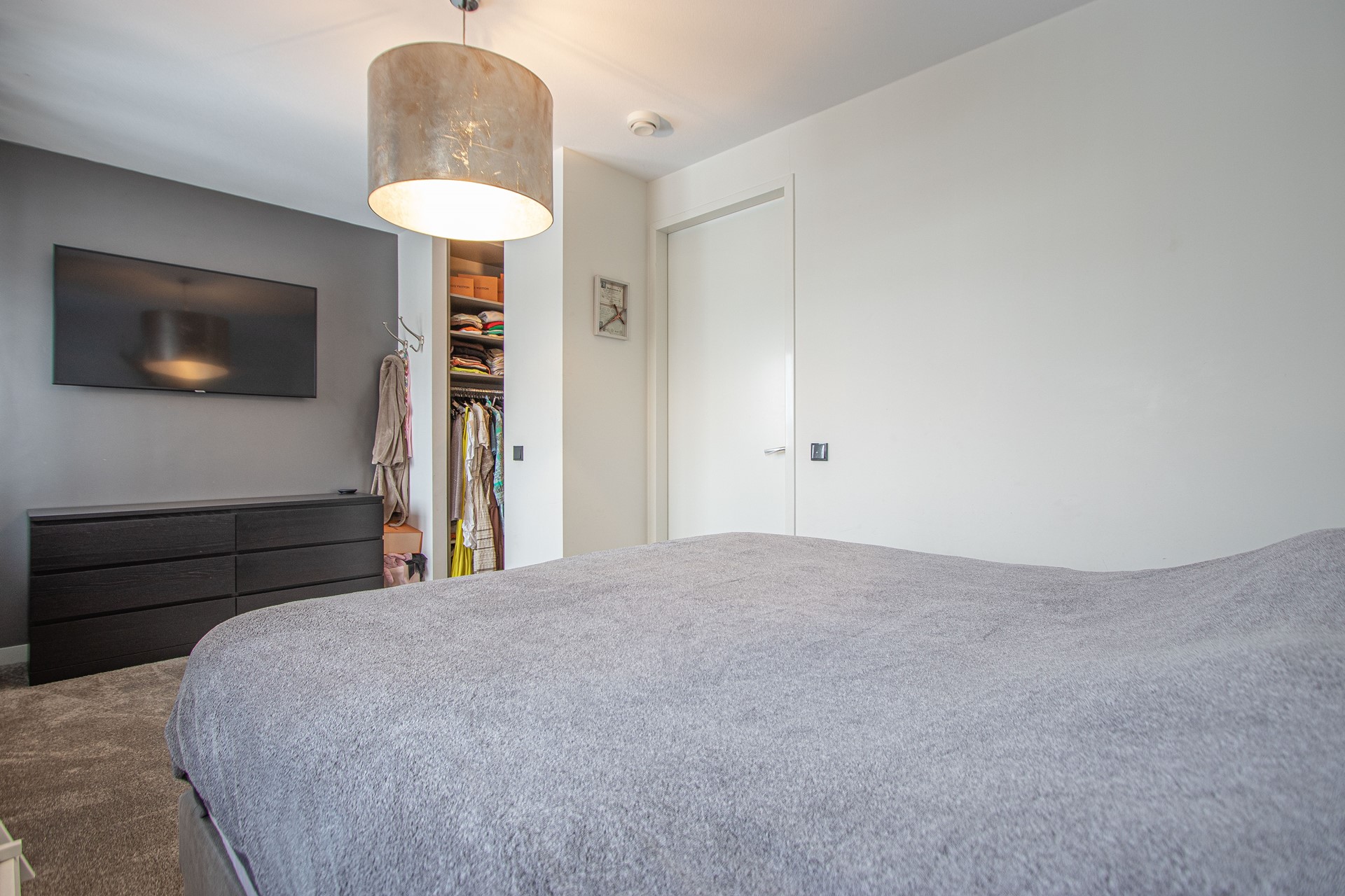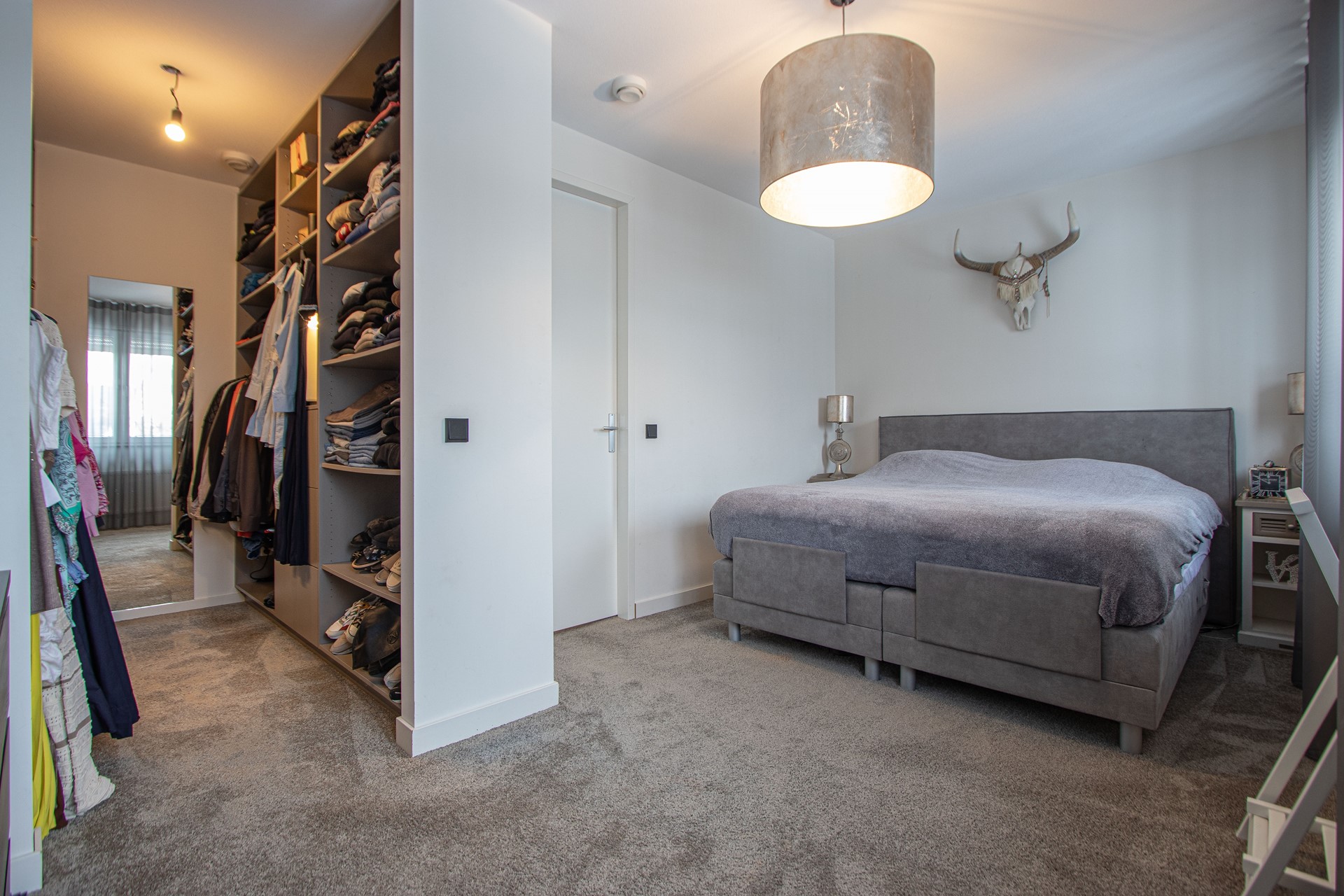 Overloop met daaraan gelegen een tweetal royale slaapkamers waarvan één met inloop(kleding)kast en super-de-luxe badkamer en een tweede airco.