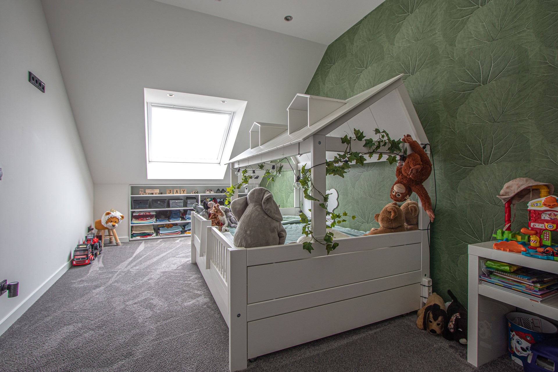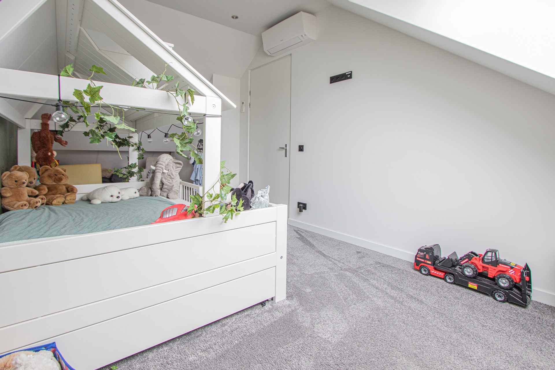 Middels vaste trap bereik men de tweede verdieping met een ruime zolderkamer, voorzien van vloerbedekking en een Velux dakraam voor prettige lichtinval en derde AIRCO. Verder tref je hier de cv-installatie alsook de WTW-installatie en nog wat praktische opbergruimte. Aan de voorzijde van de woning is een lange oprit aanwezig voor minimaal twee personenauto’s op eigen terrein en een onderhoudsvriendelijk aangelegde voortuin.