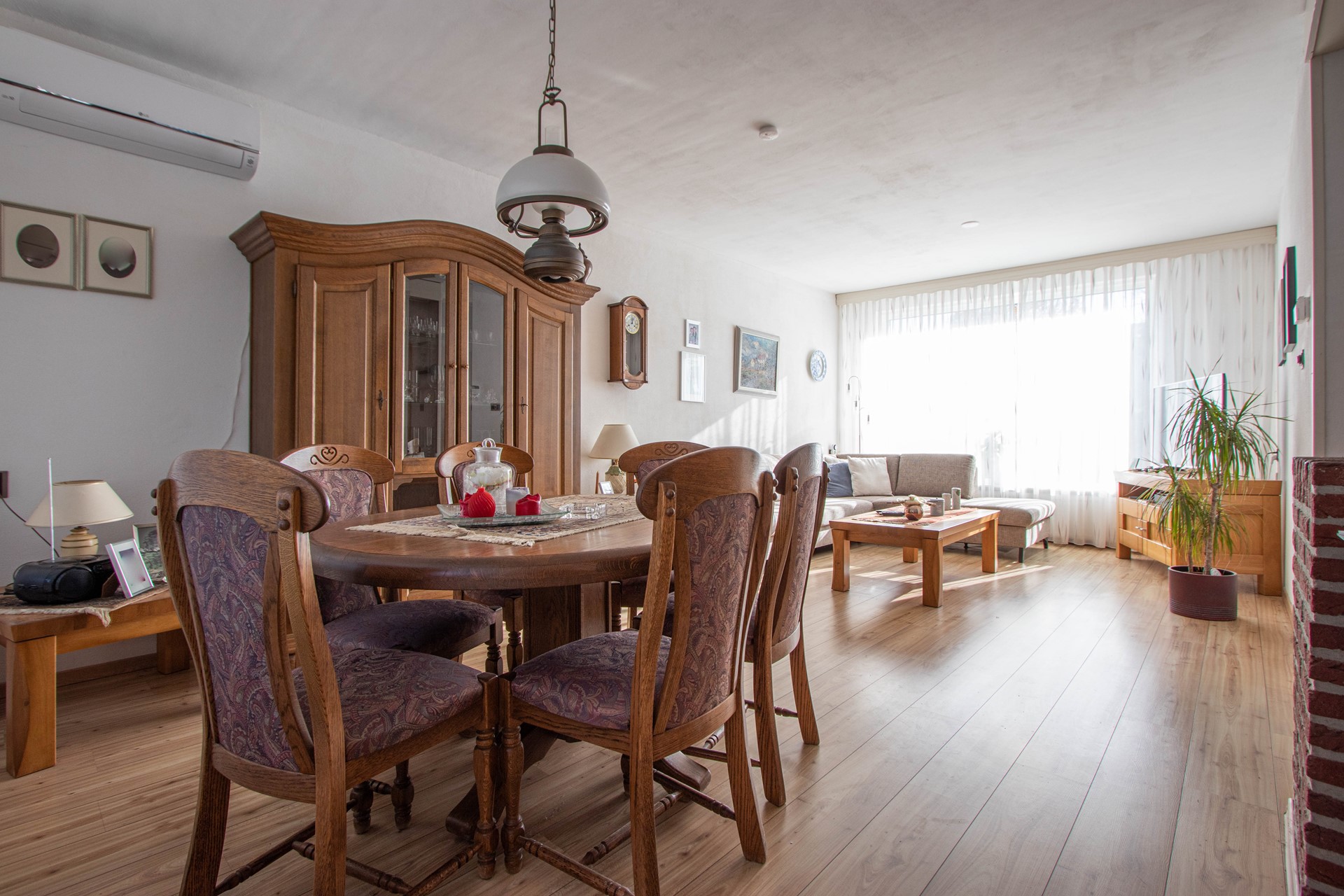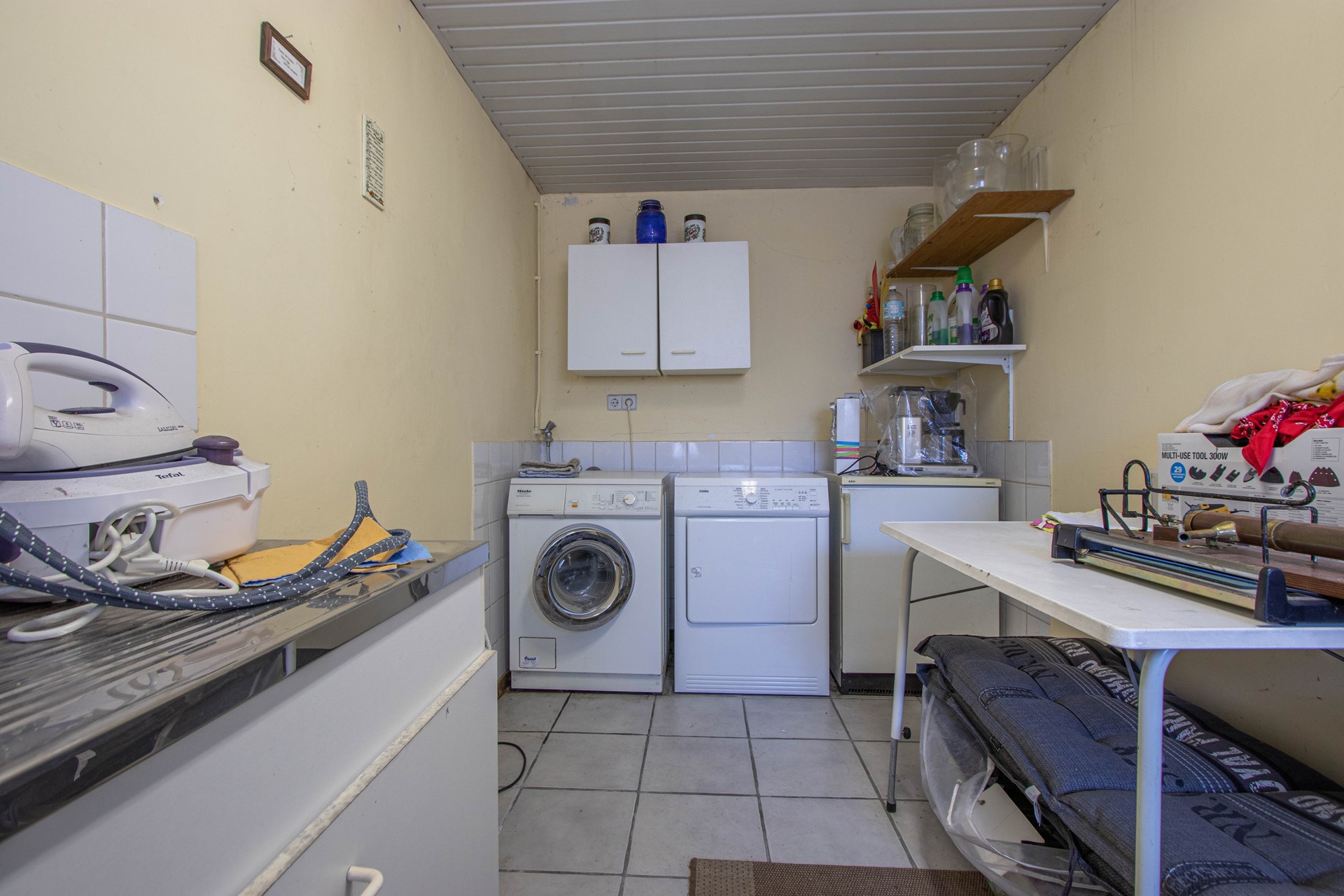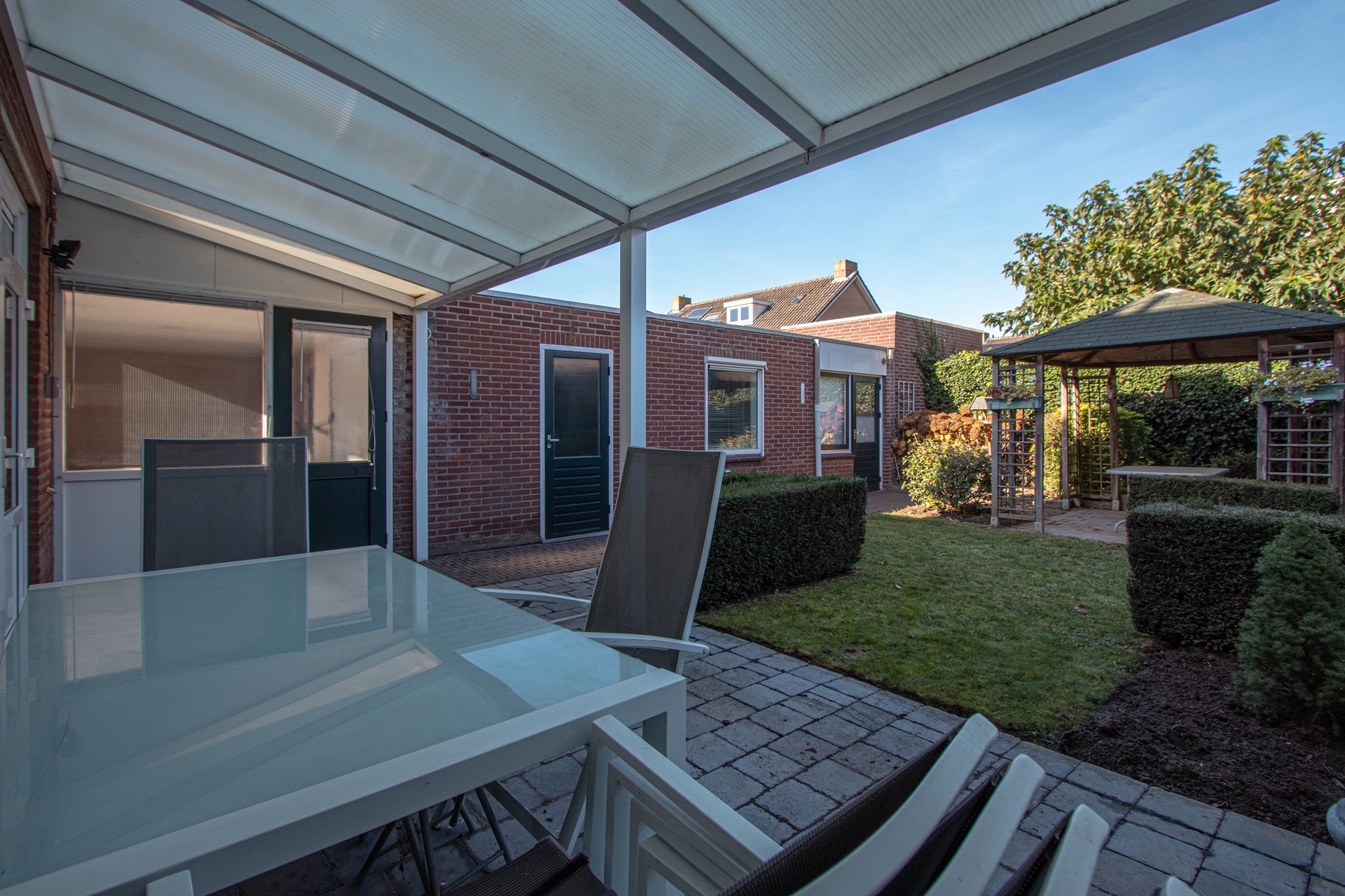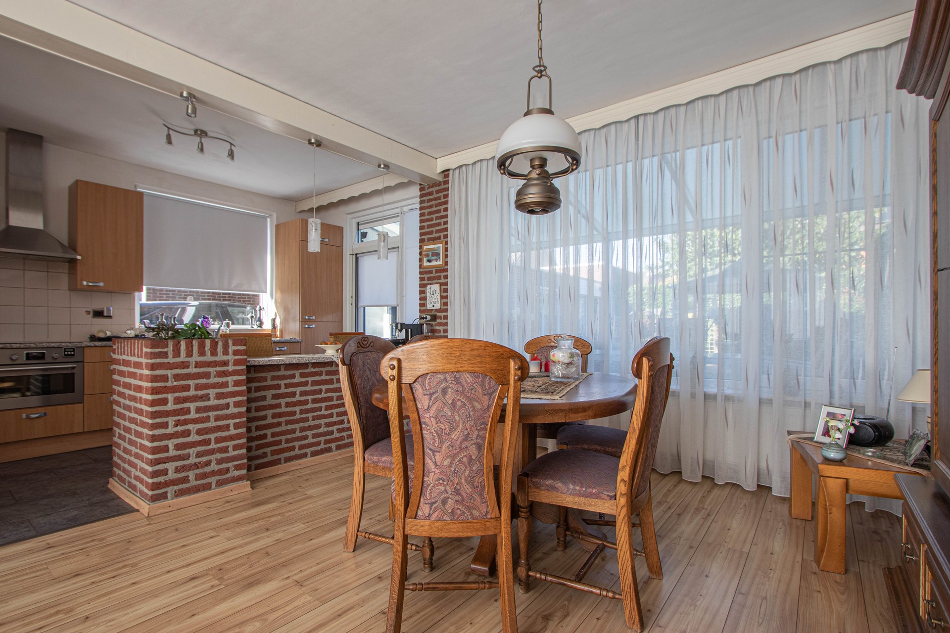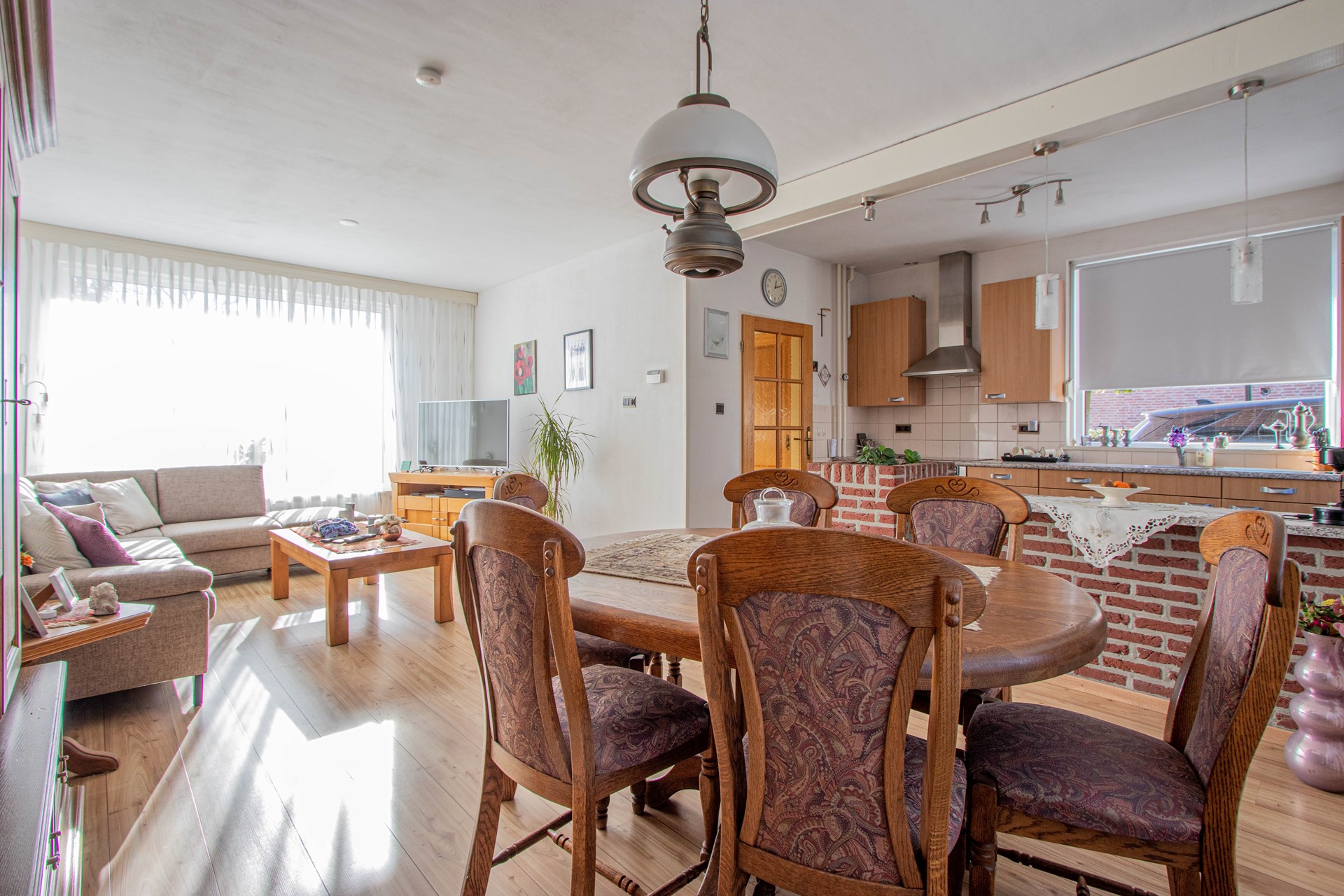 Bij binnenkomst in de ruime ontvangsthal met garderobe, meterkast en toiletruimte met fonteintje is toegang tot de keuken en opgang naar de eerste verdieping. De halfopen keuken is praktische ingericht en uitgerust met diverse inbouwapparatuur en speels barretje. De lichte woonkamer heeft een warme uitstraling dankzij de mooie laminaatvloer, grote raampartijen en de airco (2023) die zorgt voor een aangenaam klimaat in elk seizoen. Vanuit de keuken heb je direct toegang tot de tuin, waardoor koken en buitenleven hier moeiteloos in elkaar overlopen. Op zomerse dagen zet je gewoon de deur open en geniet je van het zonnetje terwijl het diner op het fornuis staat. De tuin en fenomenale terrasoverkapping is een fijne verlenging van de leefruimte: verzorgd aangelegd met een gezellig terras, een groene grasstrook en kleurrijke beplanting. Dankzij de ligging op het zuidoosten kun je hier van de ochtend tot laat in de middag heerlijk van de zon genieten. Achter in de tuin vind je een prieeltje was het heerlijk toeven is. Achter de garage is nog een praktische bijkeuken waar zich thans de witgoedaansluitingen bevinden. De garage is ruim 27m² en ideaal voor doe-het-zelvers, hobbyisten, autoliefhebbers of gewoon voor fietsen e.d. Aan de linkerzijde is een loopdeur en via de (kleine) carport is eveneens de achtertuin te bereiken vanaf de extra brede oprit. Deze is perfect voor de caravan, camper of bedrijfsauto. De voortuin is verzorgd aangelegd met diverse aanplant en vanuit de woonkamer heb je zicht over de brede straat.