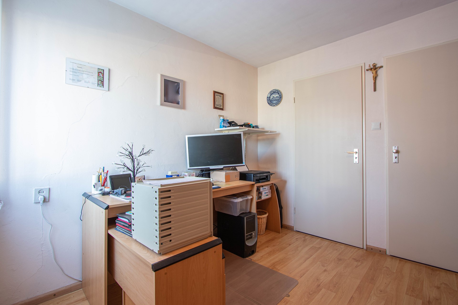 Via de trap in de hal is de eerste verdieping bereikbaar waaraan gelegen drie keurige slaapvertrekken en een heel mooie bovenal complete badkamer die in alle gemakken is voorzien, namelijk een douche, wastafelmeubel met kasten en designradiator. De slaapkamers zijn afgewerkt met eigentijdse laminaatvloeren, muren die nog v.v. kunnen worden van een nieuw stuclaagje, waarbij de ouderkamer is uitgerust met een 2e airco, perfect voor de hete zomerdagen of wat extra verwarming in de koude dagen. De kleinere kamer heeft nog een royale muurkast, handig als kledingkast te gebruiken of voor extra opbergruimte. Middels vlizotrap is de zolderverdieping bereikbaar met cv-opstelling en veel opbergruimte.